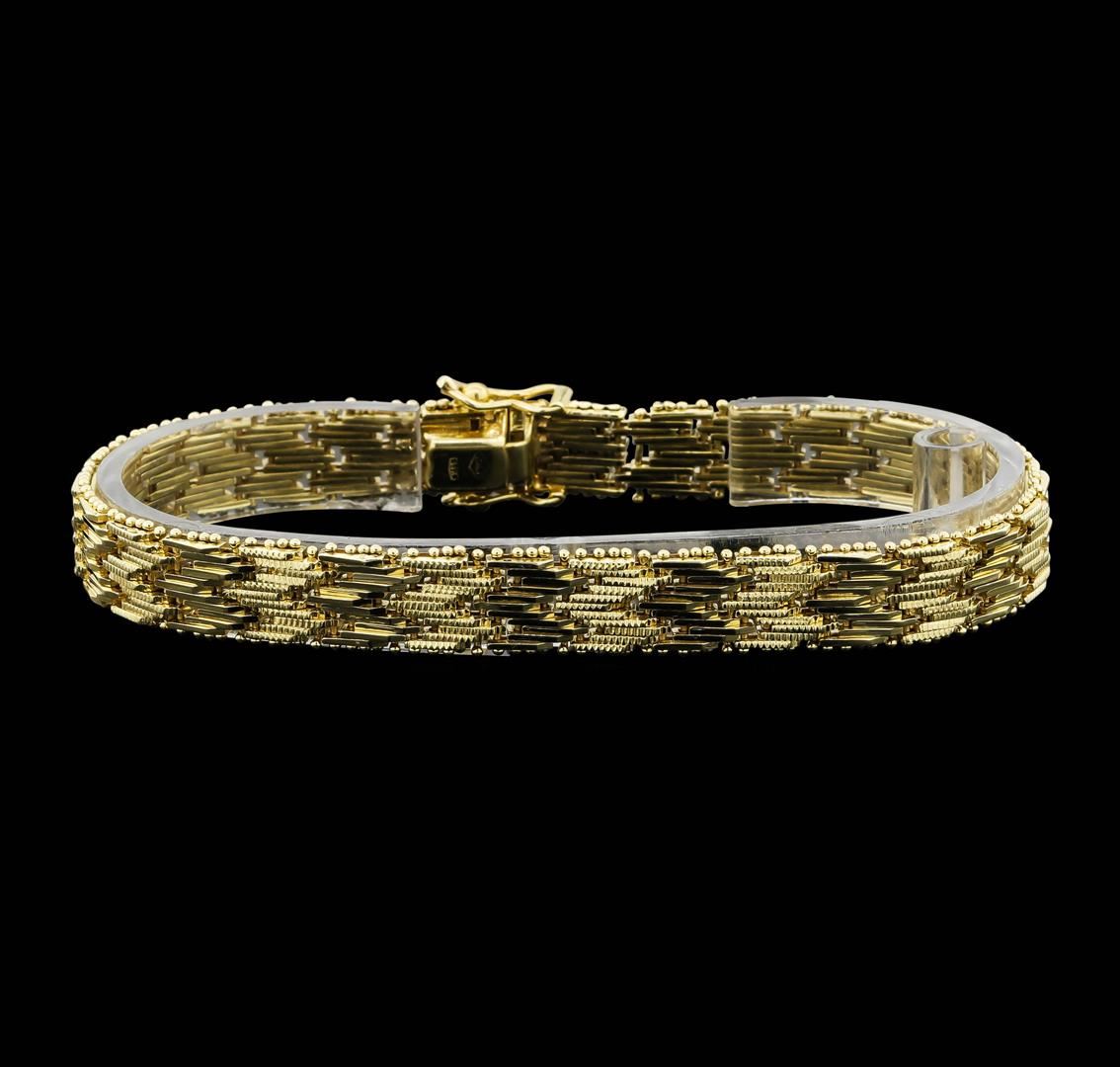 One 14K Yellow Gold Mesh Design Fashion Bracelet weighing approximately 27.8 grams. The bracelet has a length of 7.75 inches.