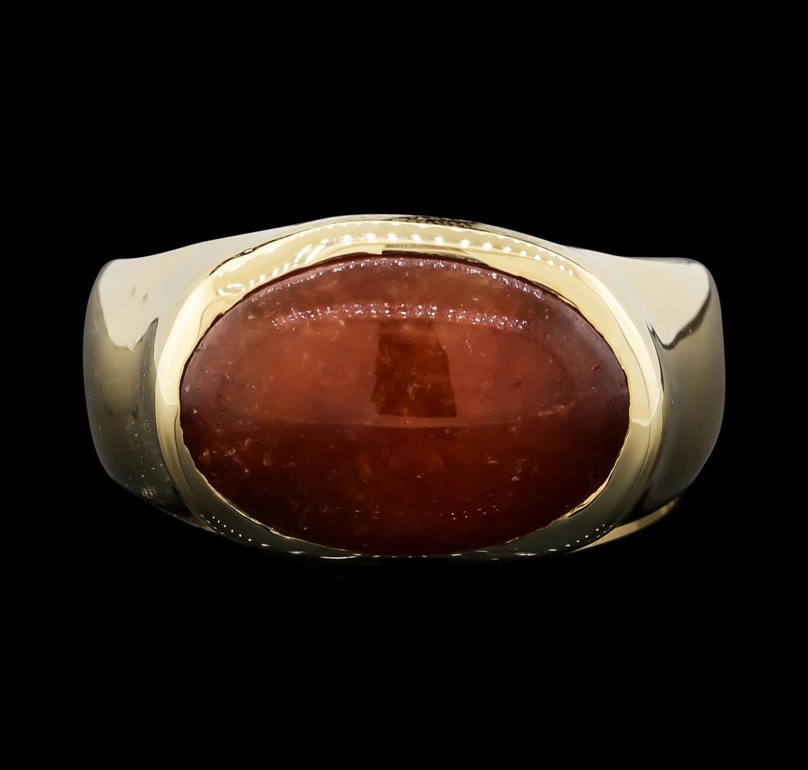 One 14K Yellow Gold Oval Cut Catseye Gemstone Ring. The total weight of the ring is 13.1 grams and is stamped with the markings of "14K" on the inside of the band.