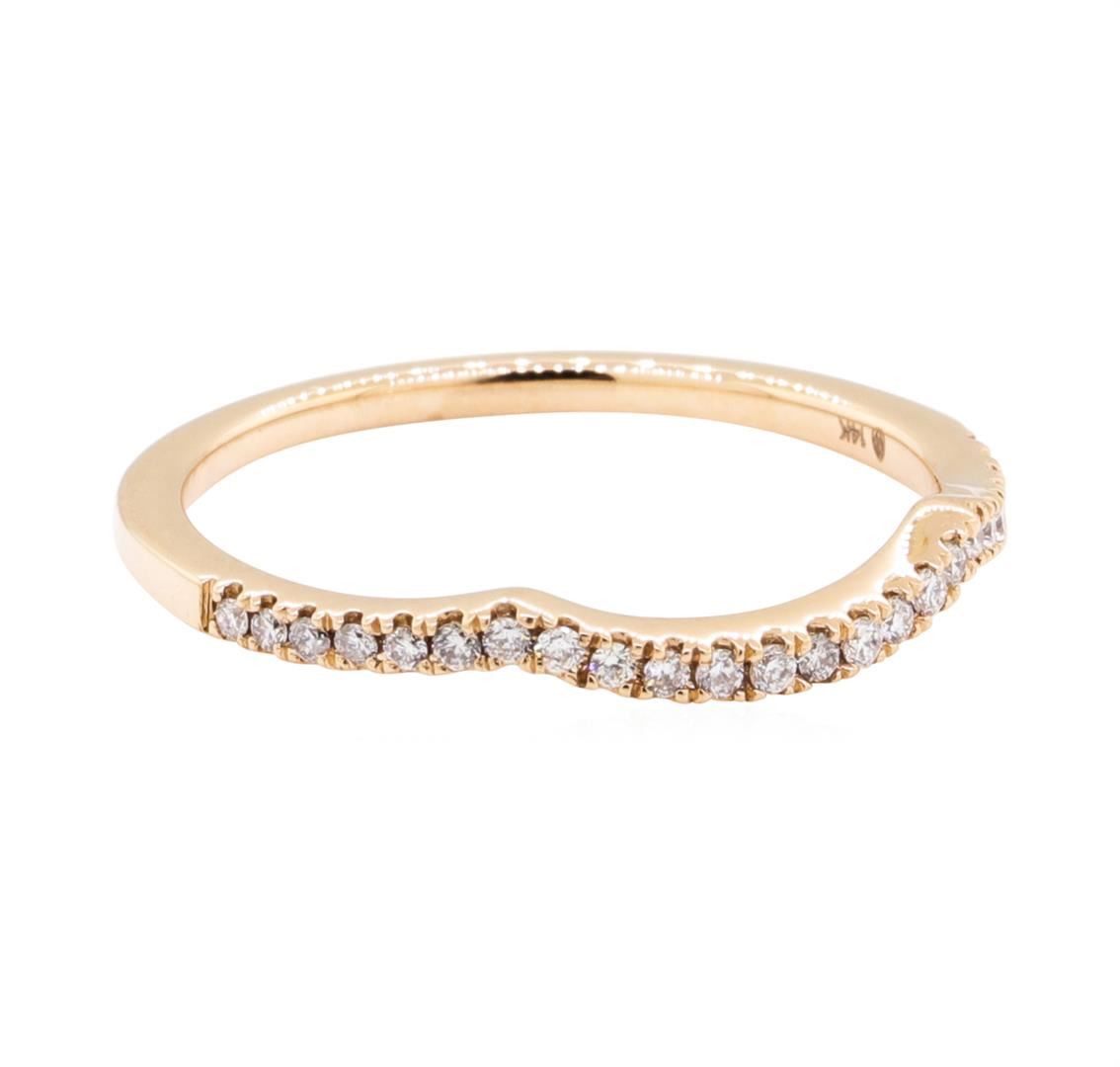 One band featuring: 14KT rose gold weighing 1.5 grams containing diamonds weighing 0.22ctw. The ring is a size 6.5.
