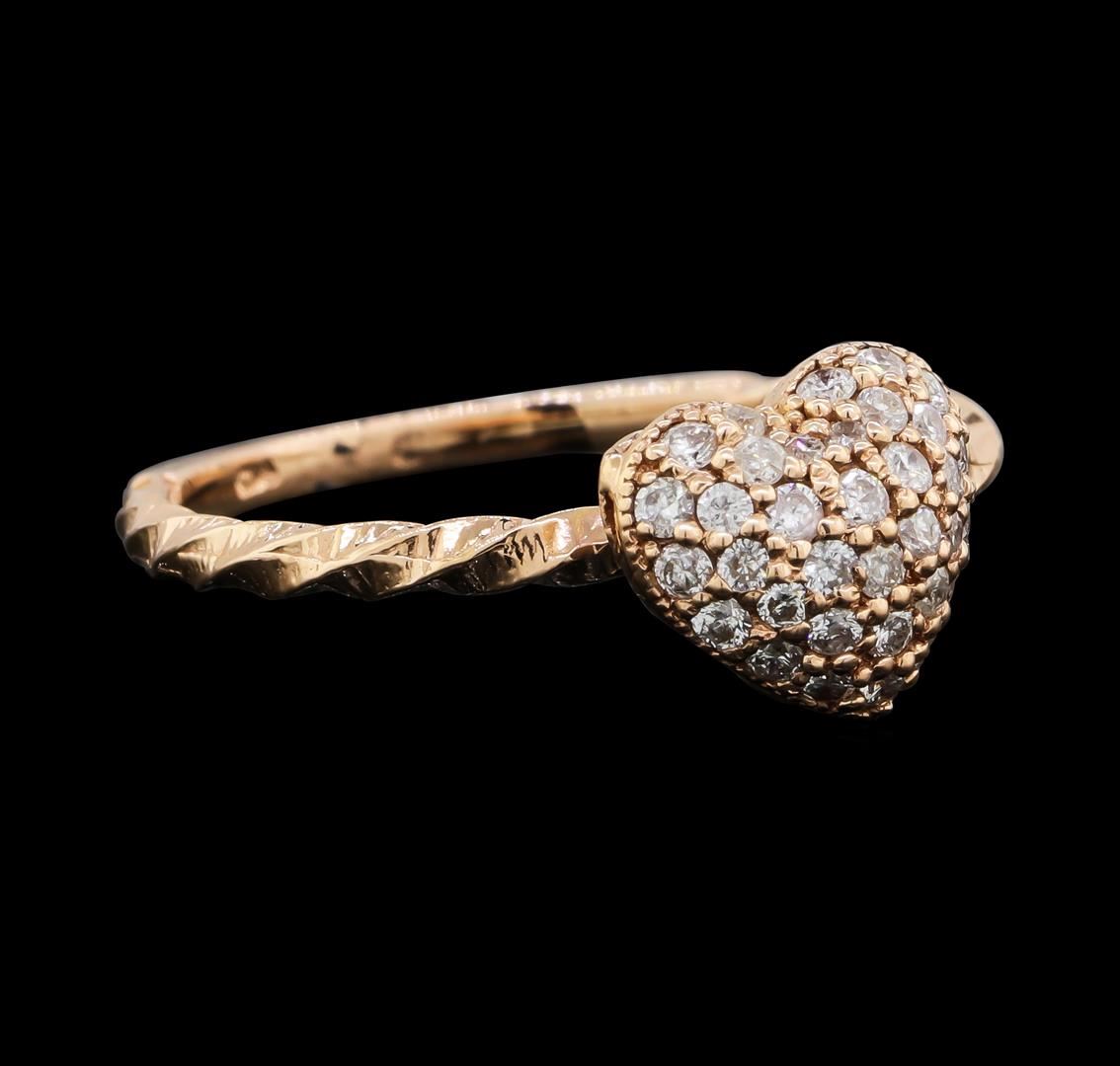 One lady's heart shaped ring with a twisted shank featuring: 14KT rose gold weighing 2.2 grams containing diamonds weighing 0.30ctw.