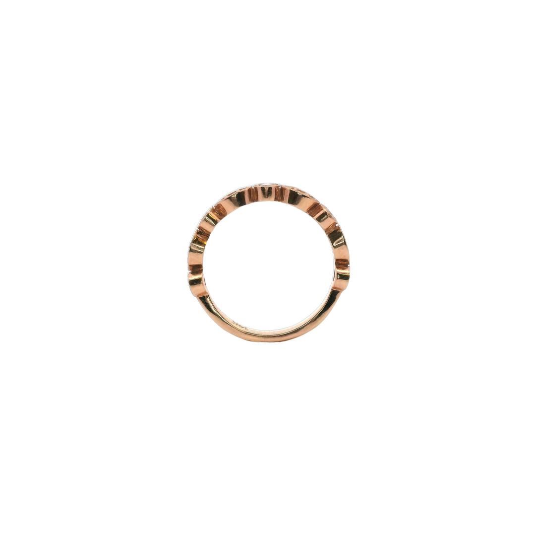 One electronically tested 14KT rose gold lady's cast fashion straight line ring with a scalloped motif with a bright polish with a milgrain detailing finish. Condition is new, good workmanship. The featured lady's ring has a shank measuring 2.1 millimeter GAS Appraised.