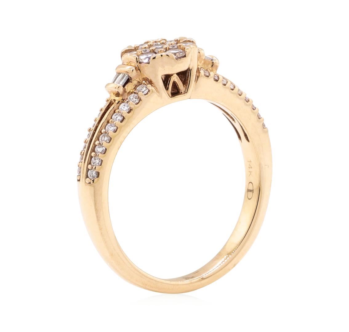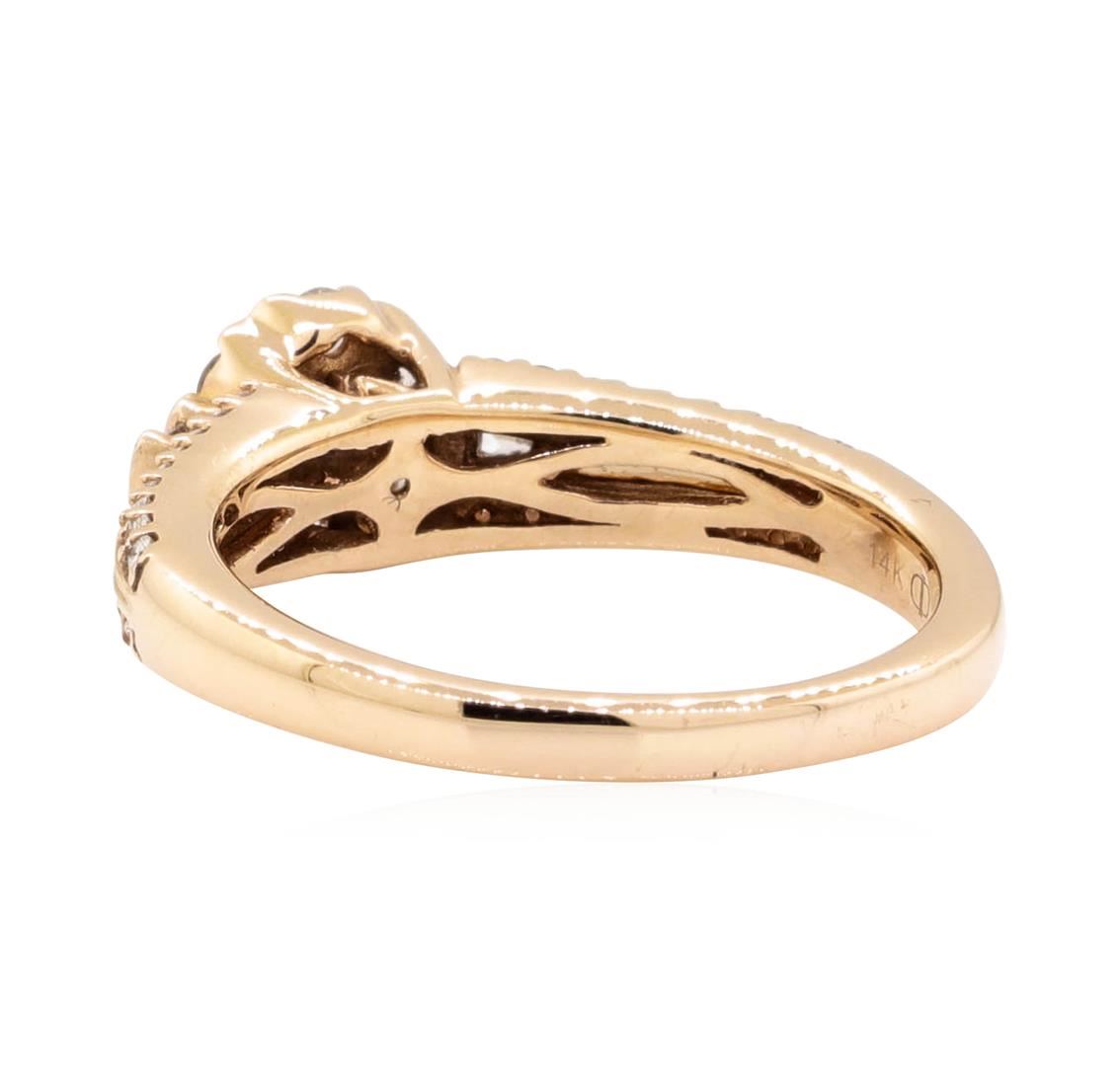 One Ladies ring featuring: 14KT rose gold weighing 3.8 grams containing diamonds weighing 0.50ctw. The ring is a size 5.5.