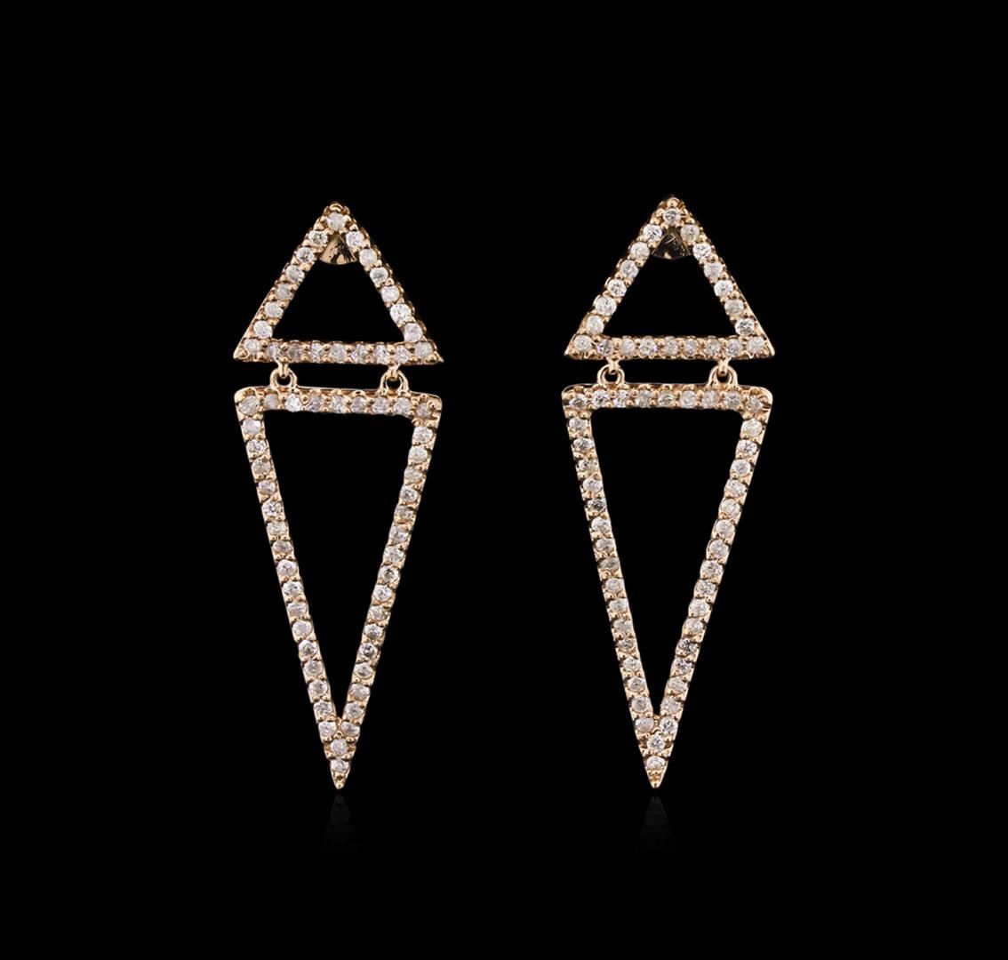 One pair of earrings featuring: 14KT rose gold weighing 4.41 grams containing diamonds with a total weight of 0.90ct.