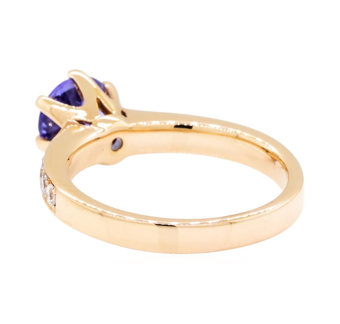 One ring featuring: 14KT rose gold weighing 4.0 grams containing one round tanzanite weighing 1.18ct and diamonds weighing 0.28ctw. The ring is a size 6.5.