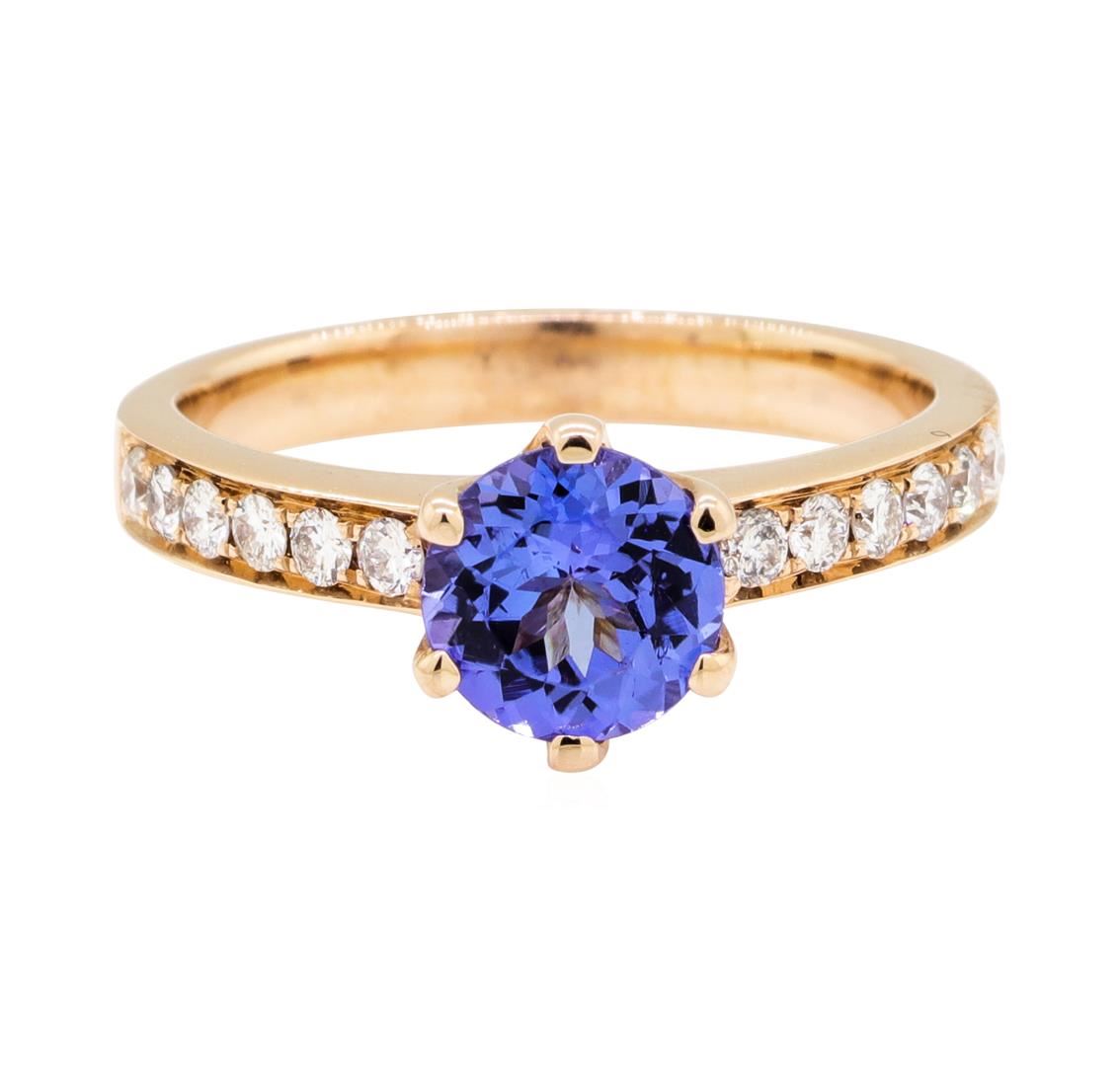 One ring featuring: 14KT rose gold weighing 4.0 grams containing one round tanzanite weighing 1.18ct and diamonds weighing 0.28ctw. The ring is a size 6.5.