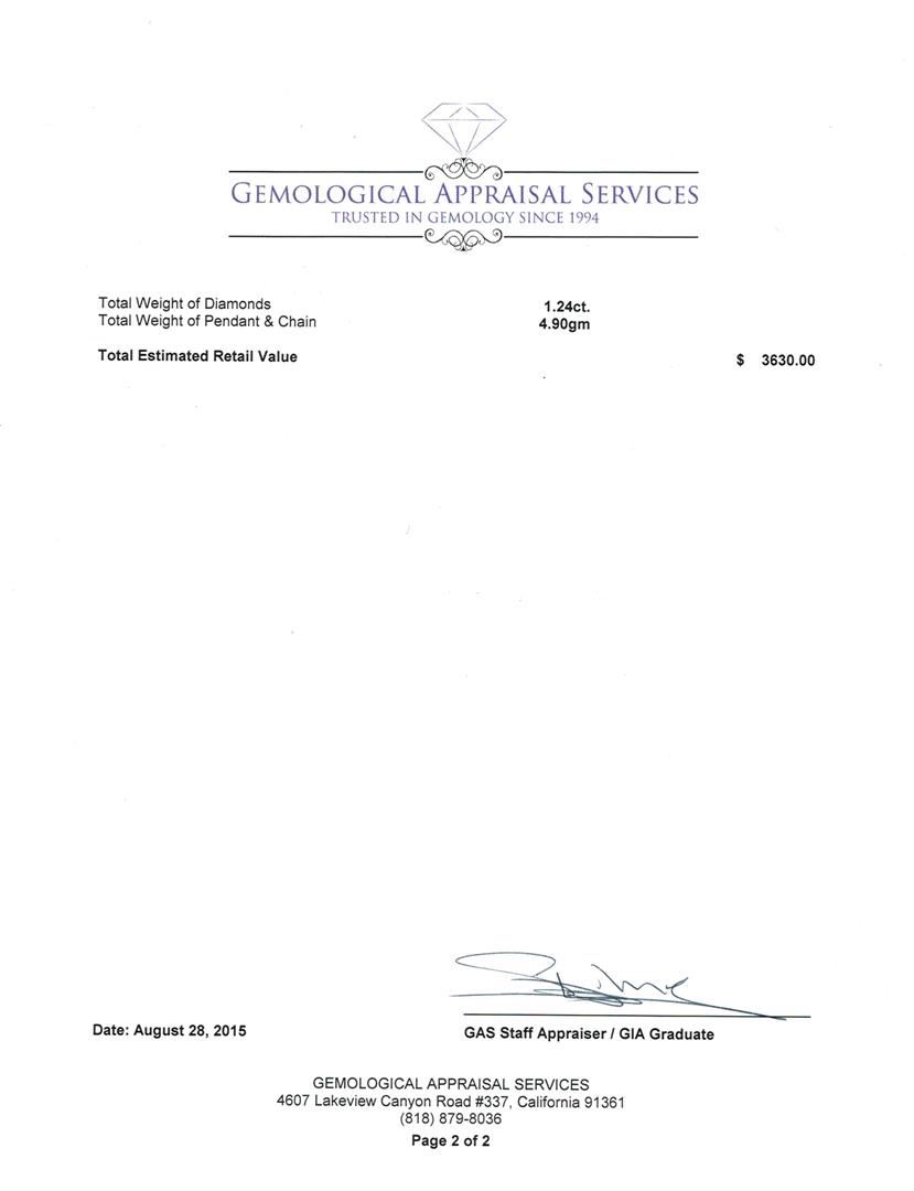 Regarding Appraised Jewelry, Watches and Loose Stones -