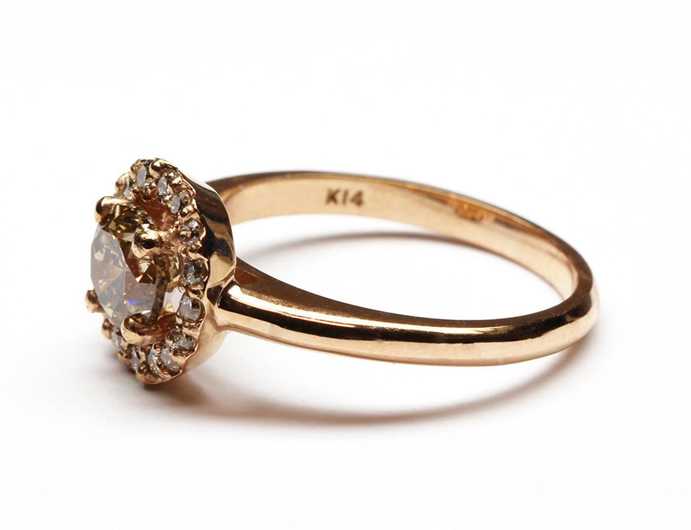 One Round Cut Diamond Engagement Wedding Band Ring in 14k Rose Gold. Setting style is solitaire with accents. The total stone weight is 1.27 carats. Gross weight is 3.80 grams with a total of 17 stones. Size is 6.75 but can be resized free of charge. Condition is brand new. Main stone is not-enhanced and natural. Main diamond weight is 1.04 carats, shape is round brilliant cut, clarity is SI1, color I-J, and cut is excellent. Side stone is not enhanced / natural. Side diamond total weight is 0.23 carats. Side diamond shape is brilliant round cut, clarity SI1, color I-J, and cut is excellent. Number of side diamonds is 16.
