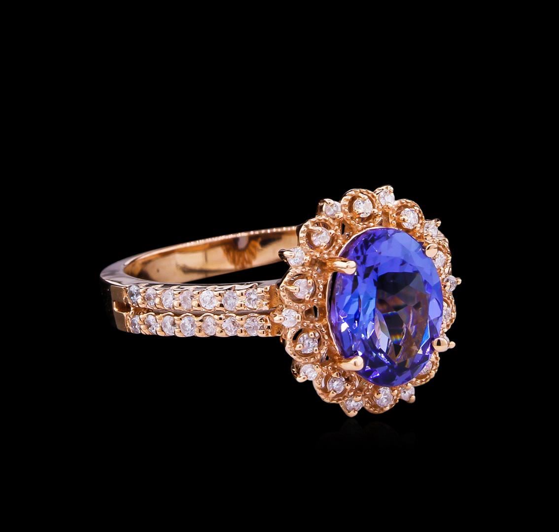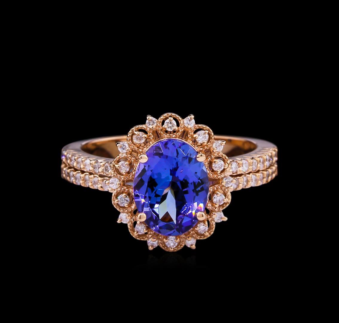 One ring featuring: 14KT rose gold weighing 4.27 grams containing one tanzanite with a total weight of 2.01ct and diamonds with a total weight of 0.31ct.