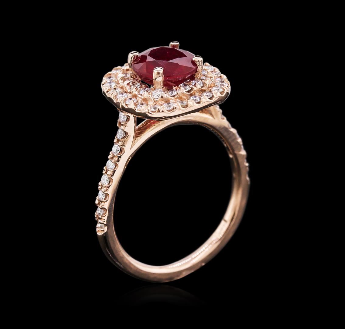 One ring featuring: 14KT rose gold weighing 4.90 grams containing one ruby with a total weight of 2.03ct and diamonds with a total weight of 0.54ct.