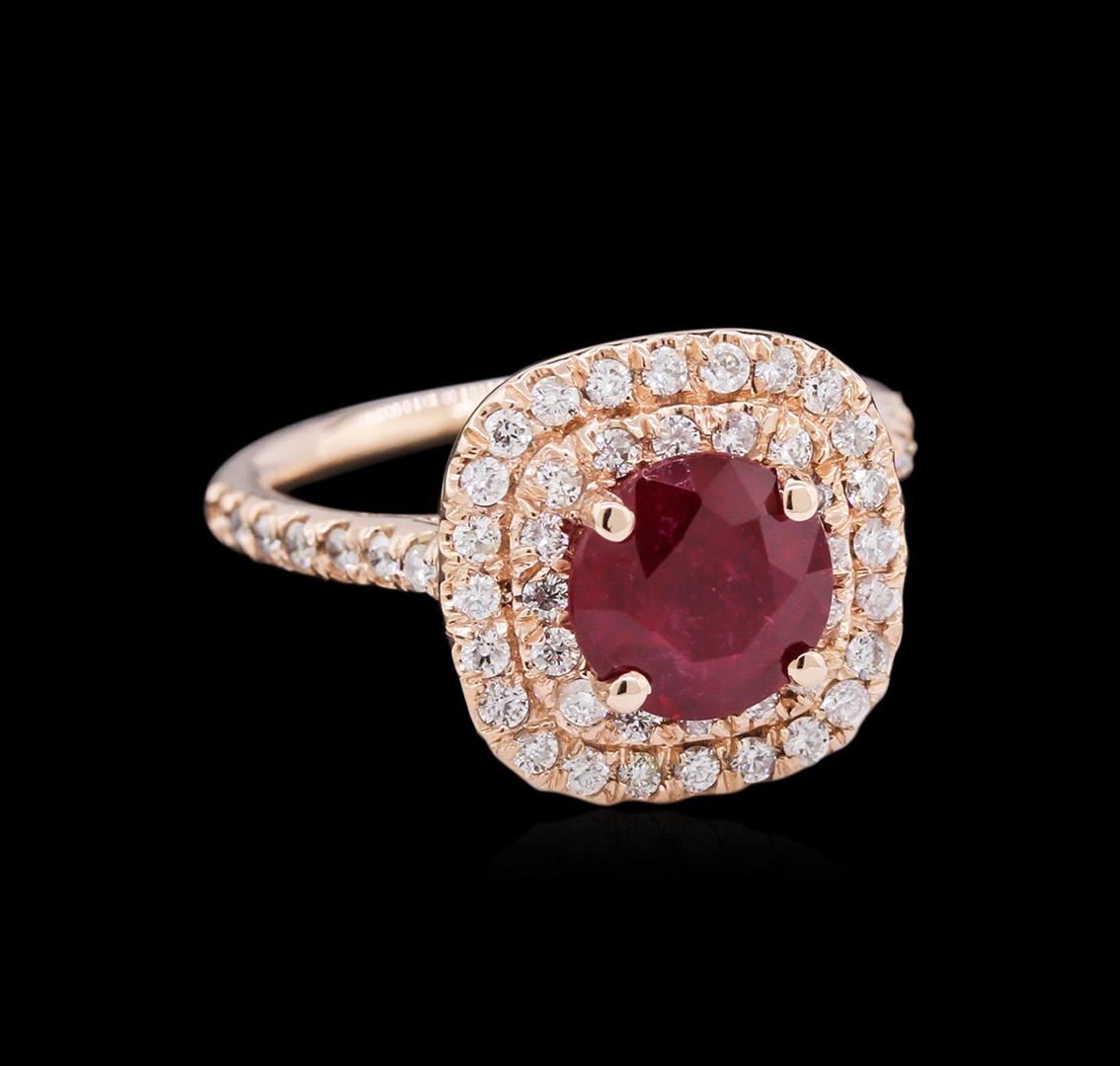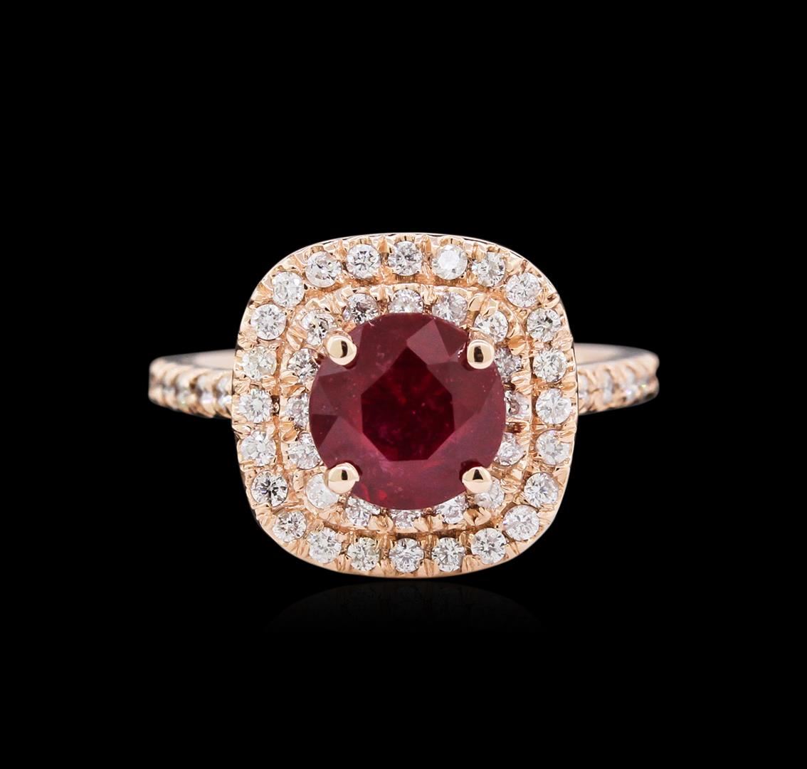 One ring featuring: 14KT rose gold weighing 4.90 grams containing one ruby with a total weight of 2.03ct and diamonds with a total weight of 0.54ct.