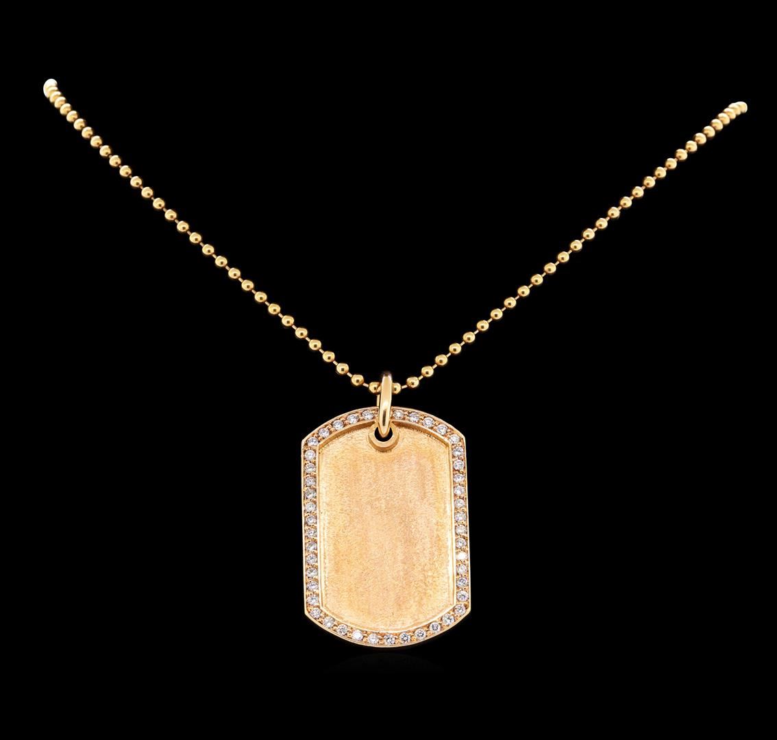 One electronically tested 14KT rose gold lady's combination cast & assembled fashion pendant & chain 22.0" long, 3mm round ball link with a lobster claw clasp with a bright polish and satin finish. The featured lady's pendant has a dog tag motif. Identified with markings of "14K 585". Condition is new, good workmanship. Containing: Forty-Six prong set round brilliant cut diamonds, measuring 2.50 - 2.35 x 1.51mm (depth est.) approximate total weight of 46 Stones = 2.50ct. Graded in the setting. Color H - I Clarity SI-1 to SI-2 Cut Good. Total Weight of Diamonds 2.50ct. Total Weight of Pendant & Chain 54.40gm. GAS Appraised.