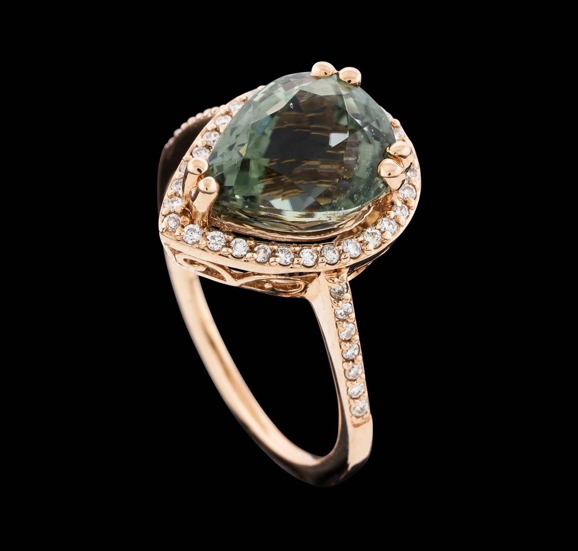 14KT Rose Gold 4.60ct Green Tourmaline and Diamond Ring