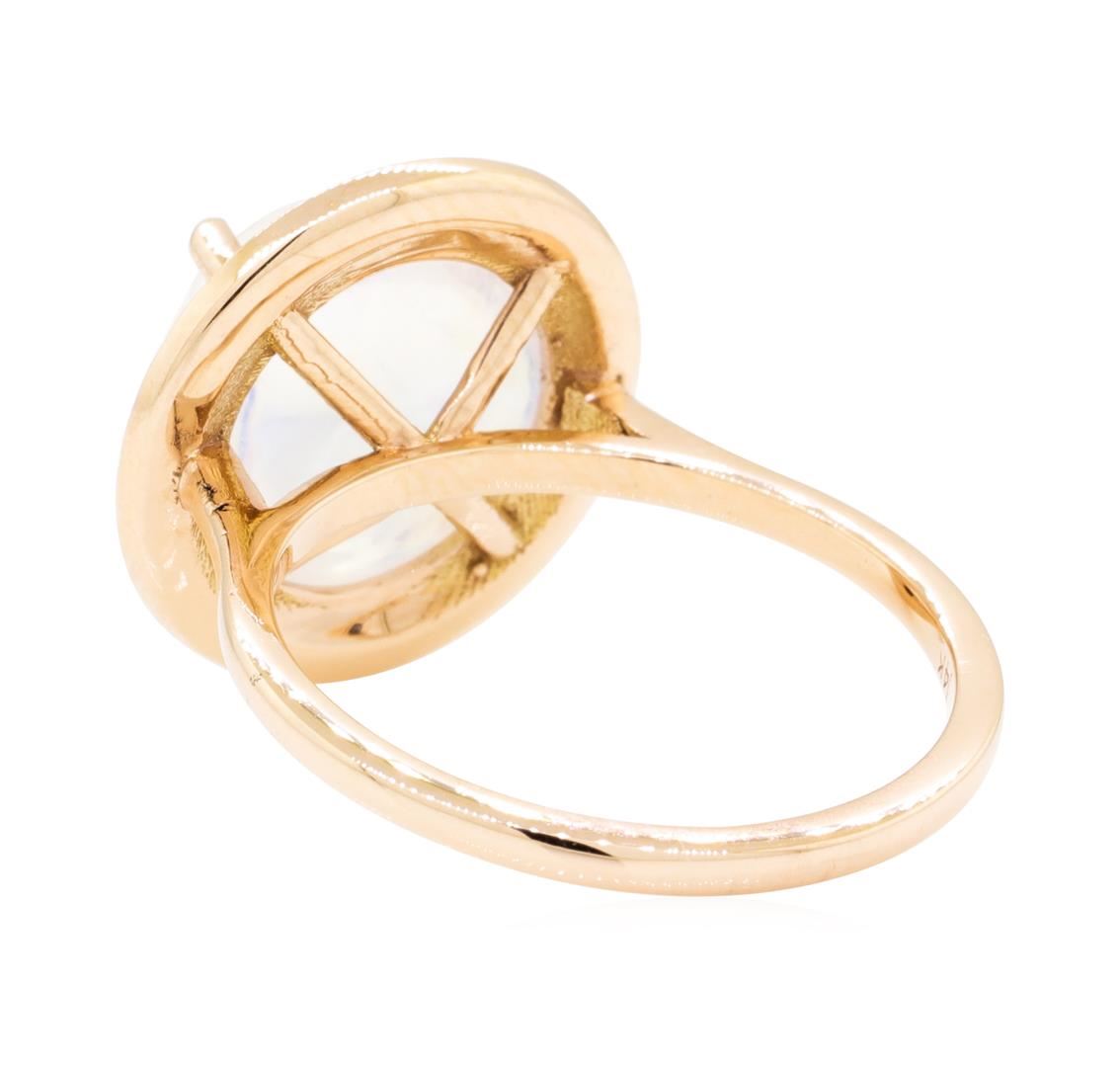 One ring featuring: 14KT rose gold weighing 4.0 grams containing one moonstone weighing 5.24ct diamonds weighing 0.23ctw. The ring is a size 6.5.