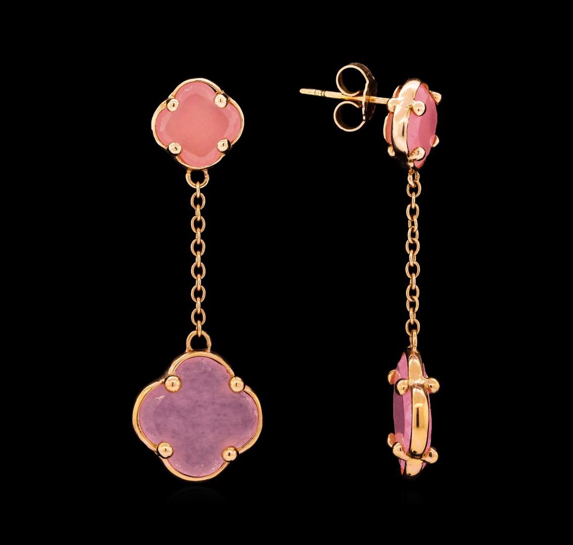 14KT Rose Gold Ladies Pink Quartz Four Leaf Clover Earrings