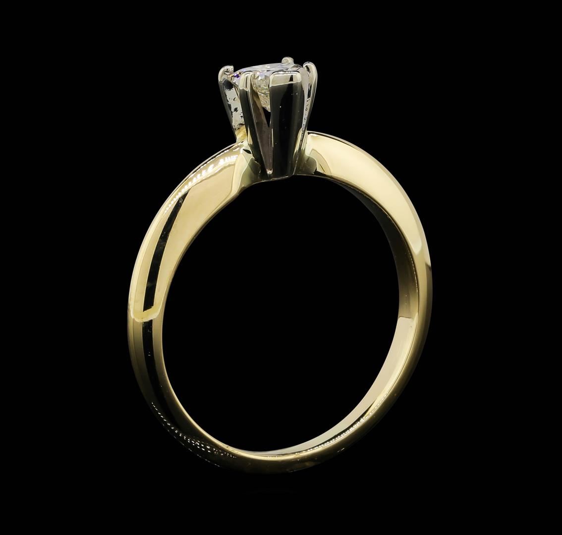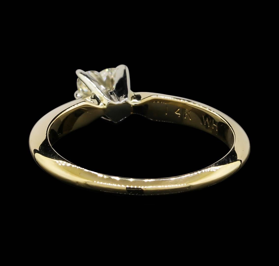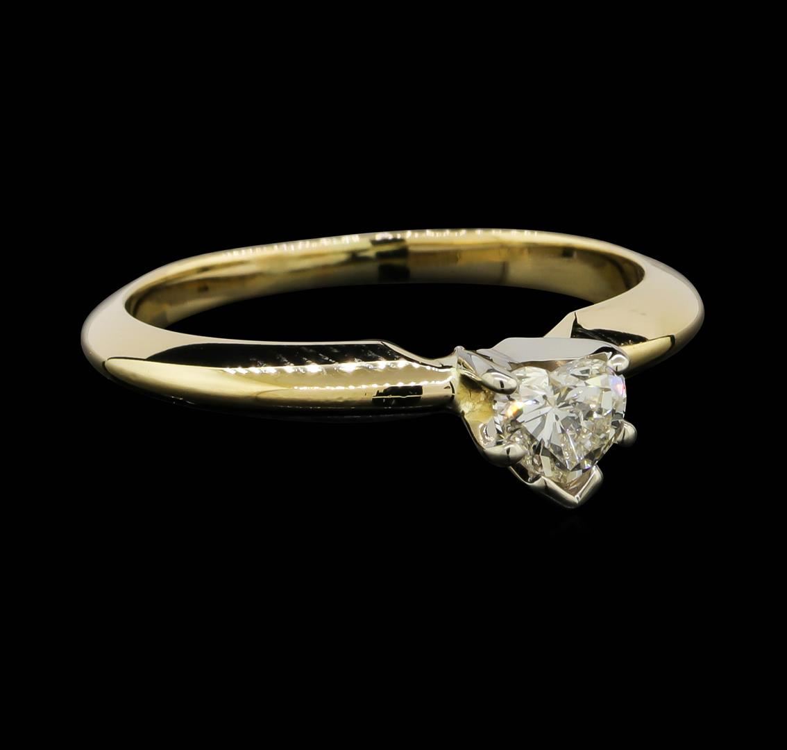 One lady's ring featuring: 14KT yellow and white gold weighing 2.7 grams containing one heart shaped diamond weighing 0.25ct.