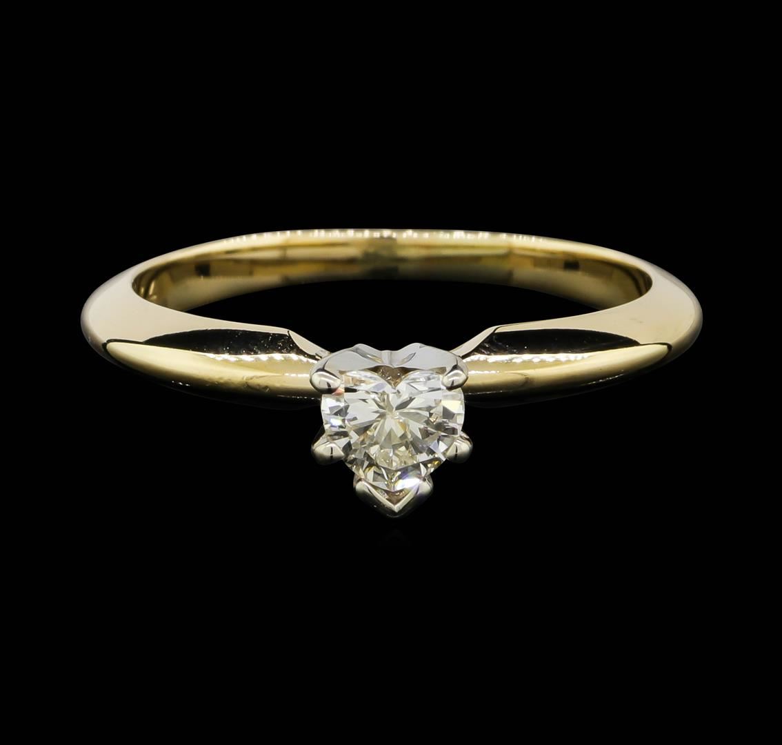 One lady's ring featuring: 14KT yellow and white gold weighing 2.7 grams containing one heart shaped diamond weighing 0.25ct.