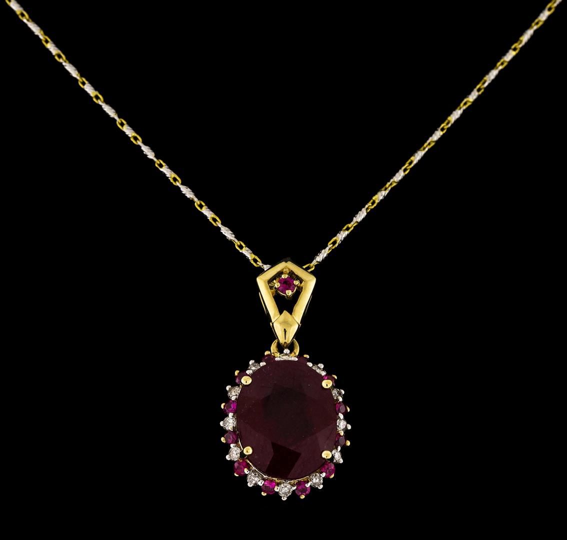14KT Two Tone Gold 6.51ctw Ruby and Diamond Pendant with Chain