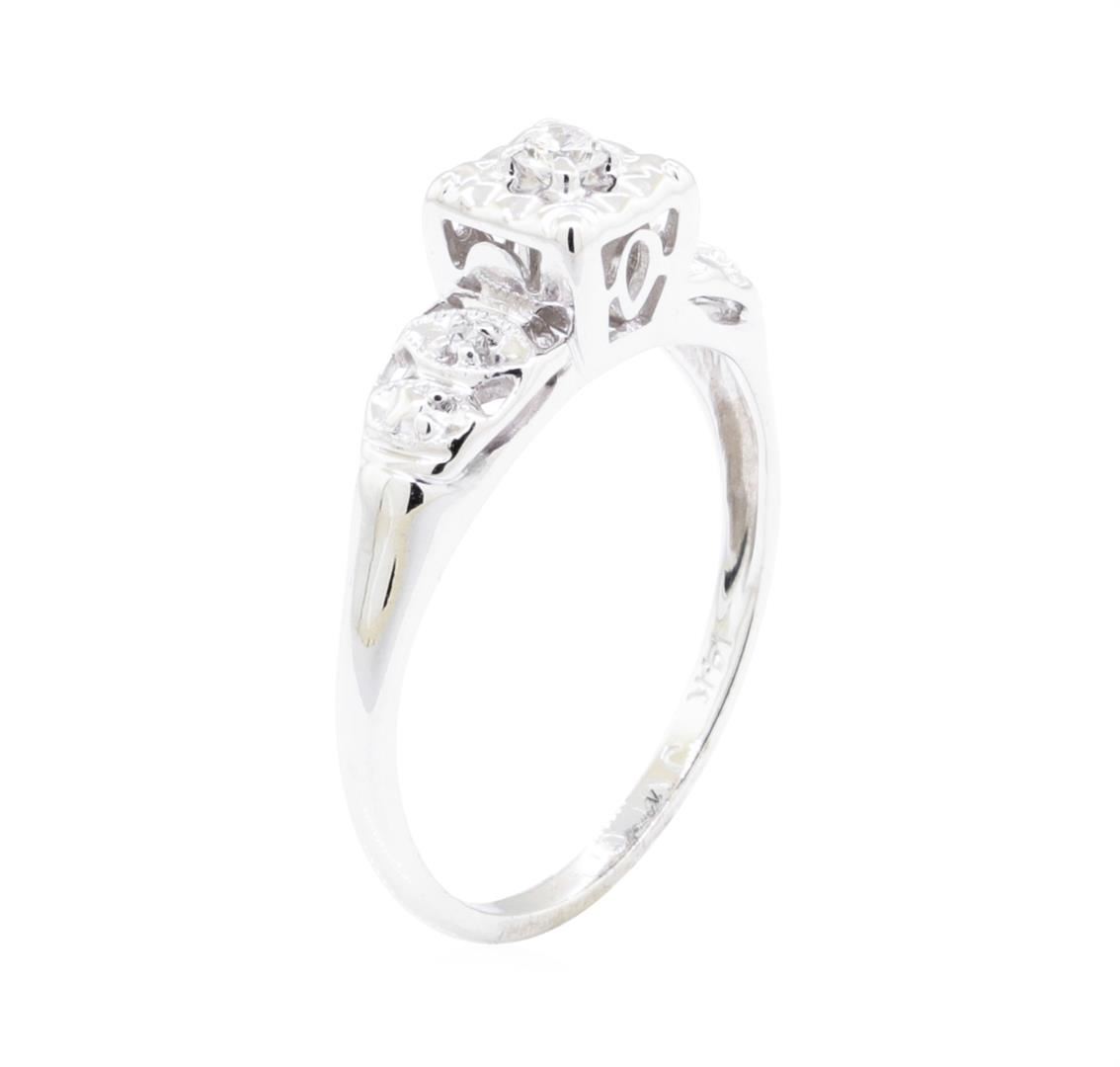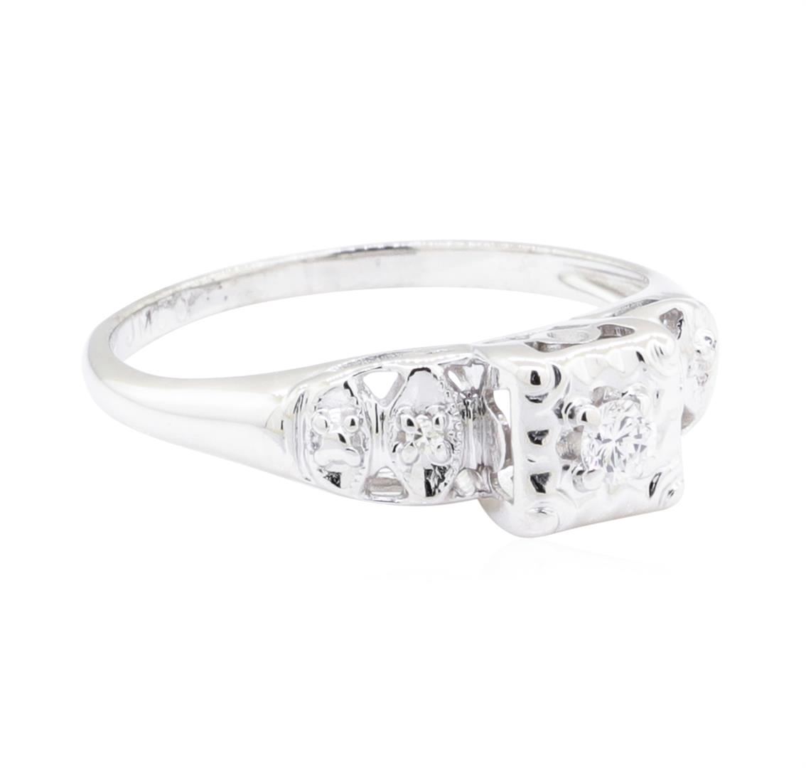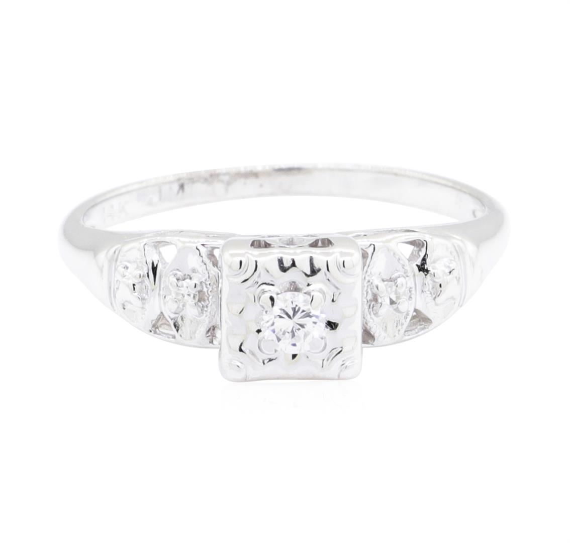 One ring featuring: 14KT white gold weighing 1.8 grams containing diamonds weighing 0.10ctw. The ring is a size 5.