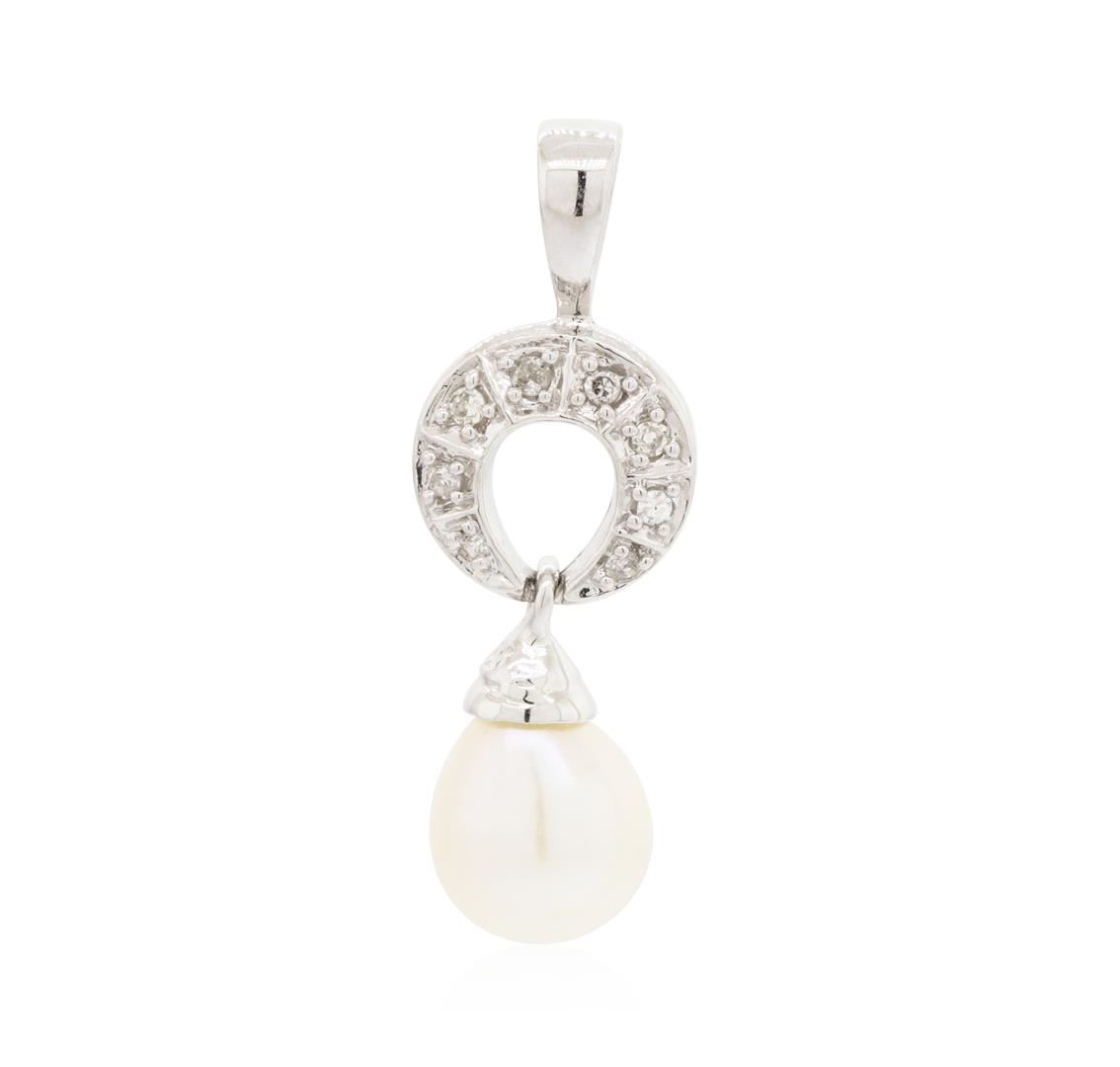One pendant featuring: 14KT white gold weighing 1.2 grams containing one freshwater pearl and diamonds weighing 0.10ctw.