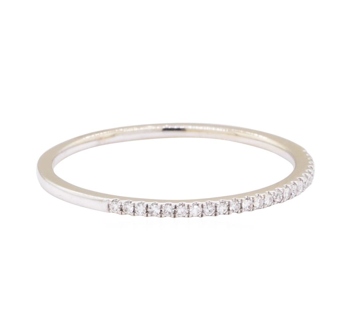 One straight line lady's ring featuring: 14KT white gold weighing 0.9 grams containing diamonds weighing 0.13ctw. The ring is a size 7.