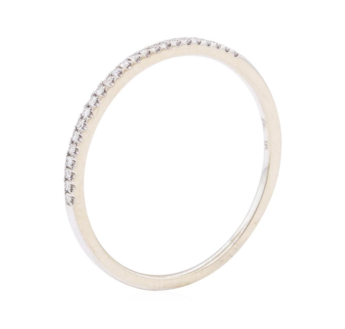 One straight line lady's ring featuring: 14KT white gold weighing 0.9 grams containing diamonds weighing 0.13ctw. The ring is a size 7.