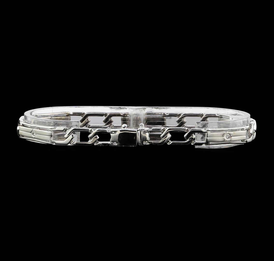 One Ladies bracelet measuring 8.5 inches long featuring: 14KT white gold weighing 17.3 grams containing diamonds weighing 0.15ctw.
