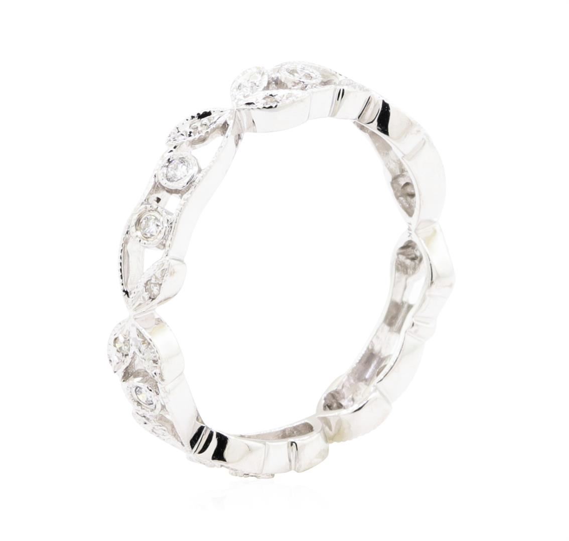 14KT White Gold 0.15 ctw Diamond Floral Motif Eternity Ring