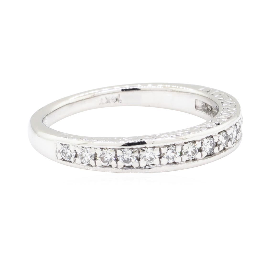 One ring featuring: 14KT white gold weighing 2.1 grams containing diamonds weighing 0.15ctw. The ring is a size 3.5.