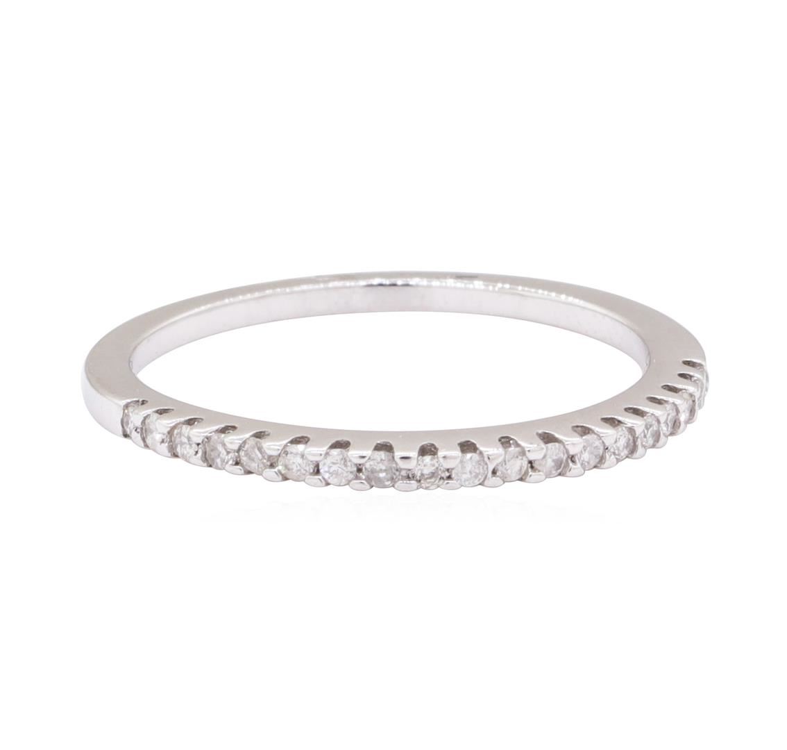 One straight line lady's ring featuring: 14KT white gold weighing 1.6 grams containing diamonds weighing 0.18ctw. The ring is a size 5.5.