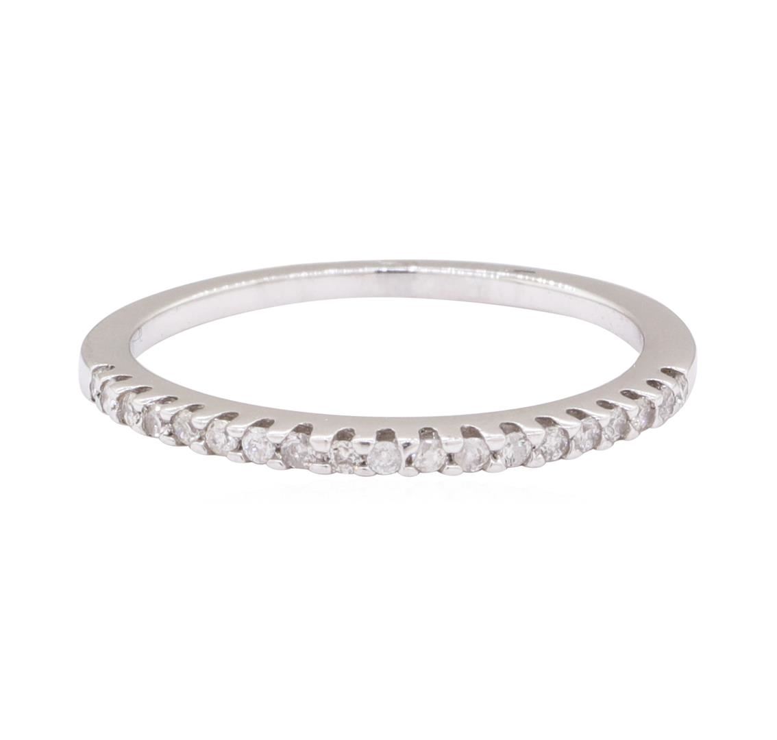 One straight line lady's ring featuring: 14KT white gold weighing 1.6 grams containing diamonds weighing 0.18ctw. The ring is a size 5.5.