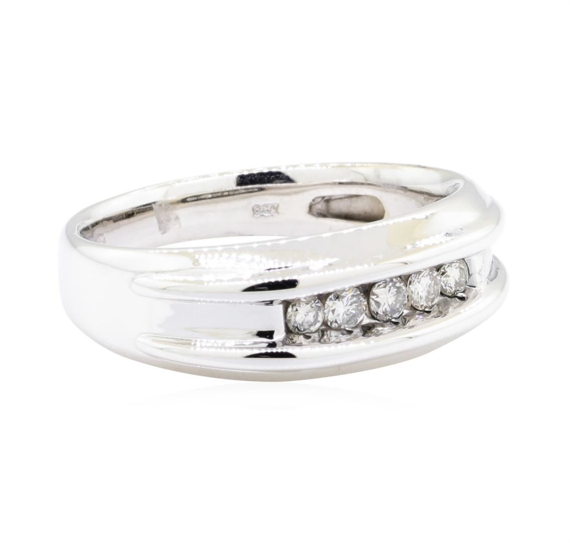 One band featuring: 14KT white gold weighing 5.8 grams containing diamonds weighing 0.25ctw. The ring is a size 9.