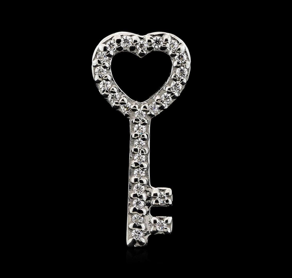 One lady's key pendant featuring: 14KT white gold weighing 2.3 grams containing twenty-six diamonds weighing 0.25ctw.