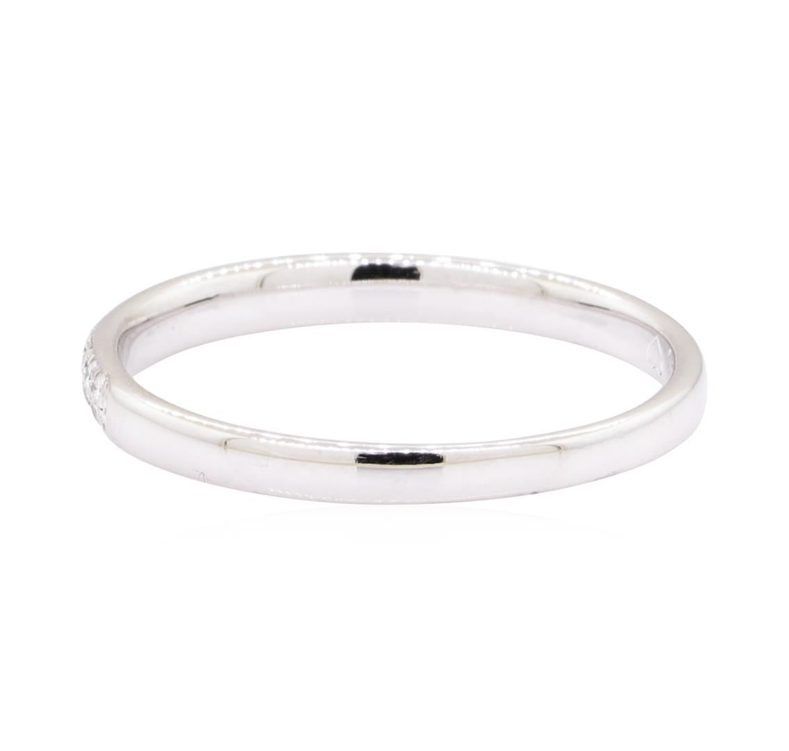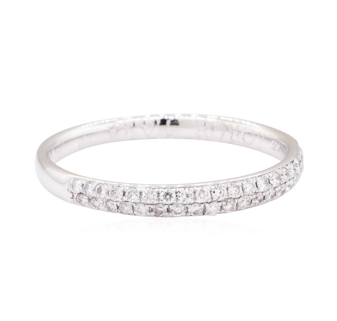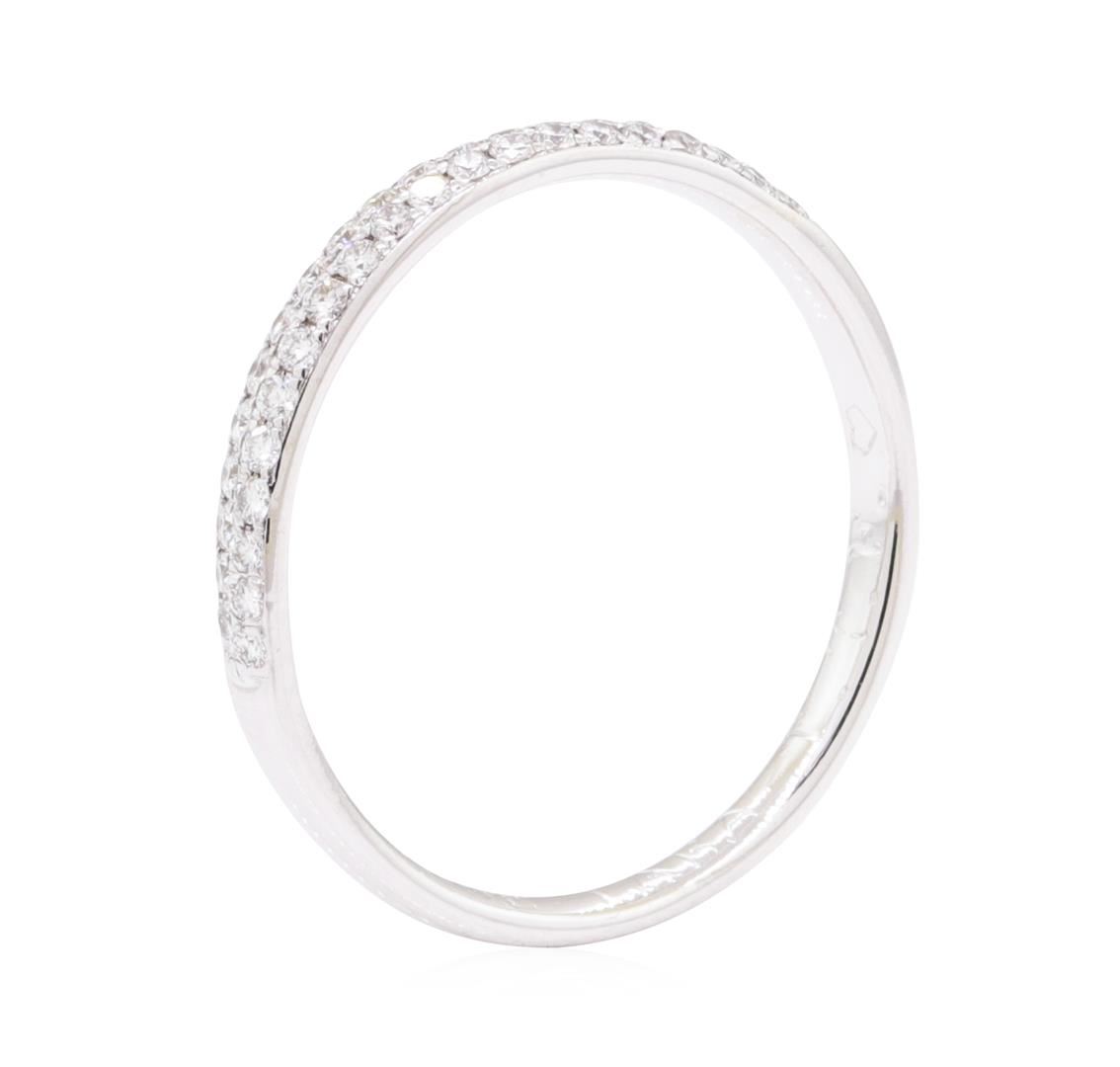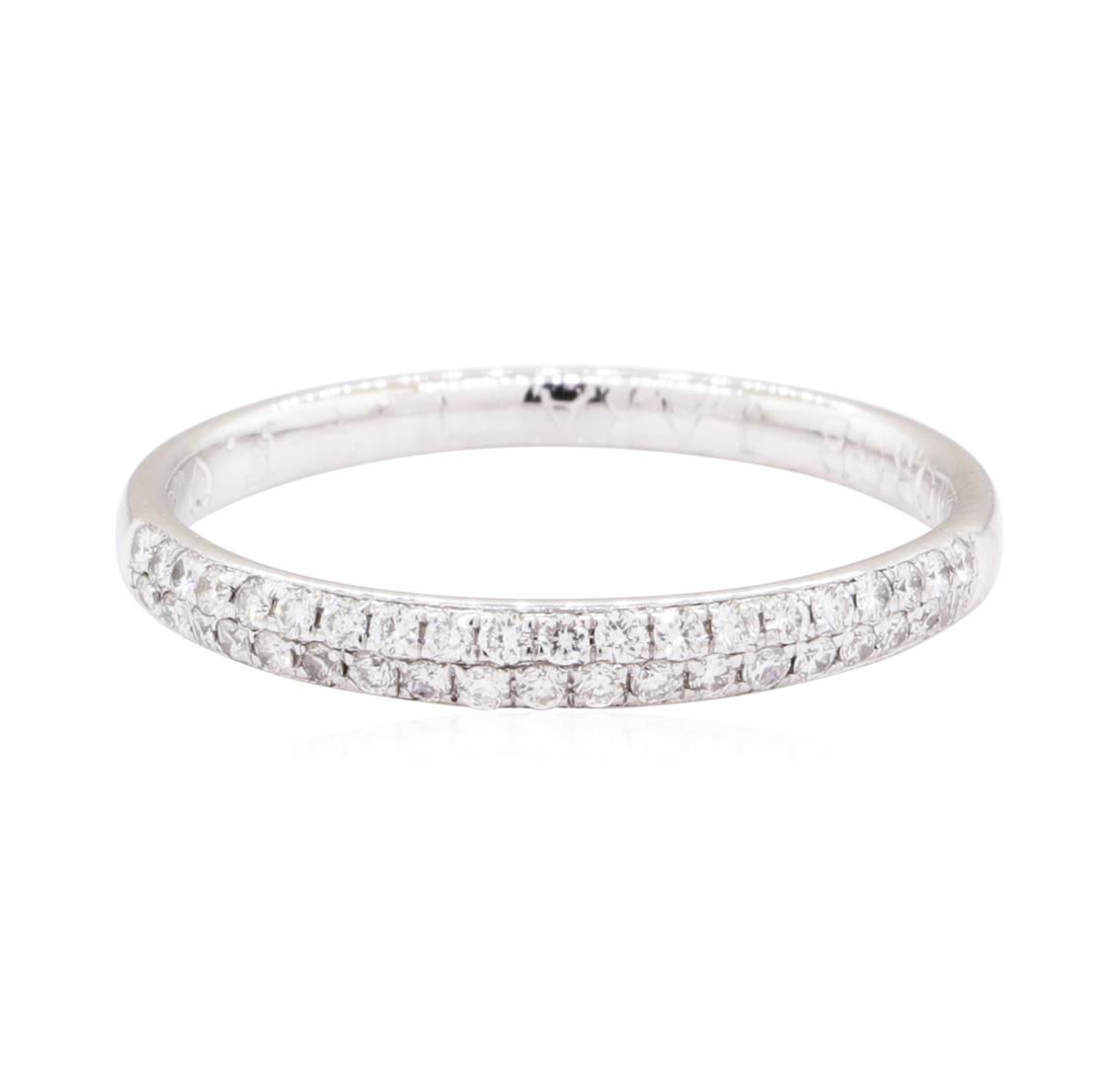 One straight line pave set ring featuring: 14KT white gold weighing 1.5 grams containing diamonds weighing 0.25ctw. The ring is a size 6.5.