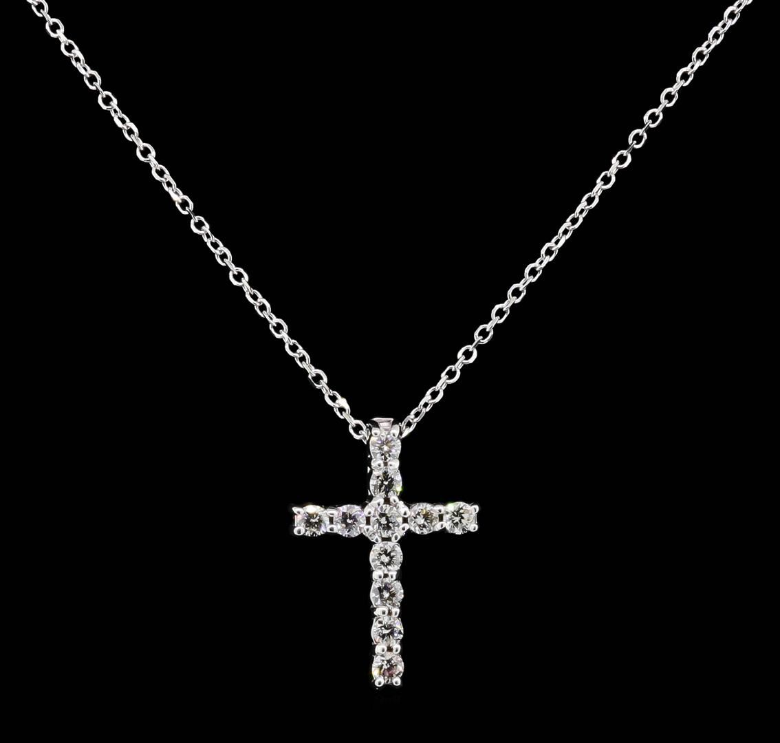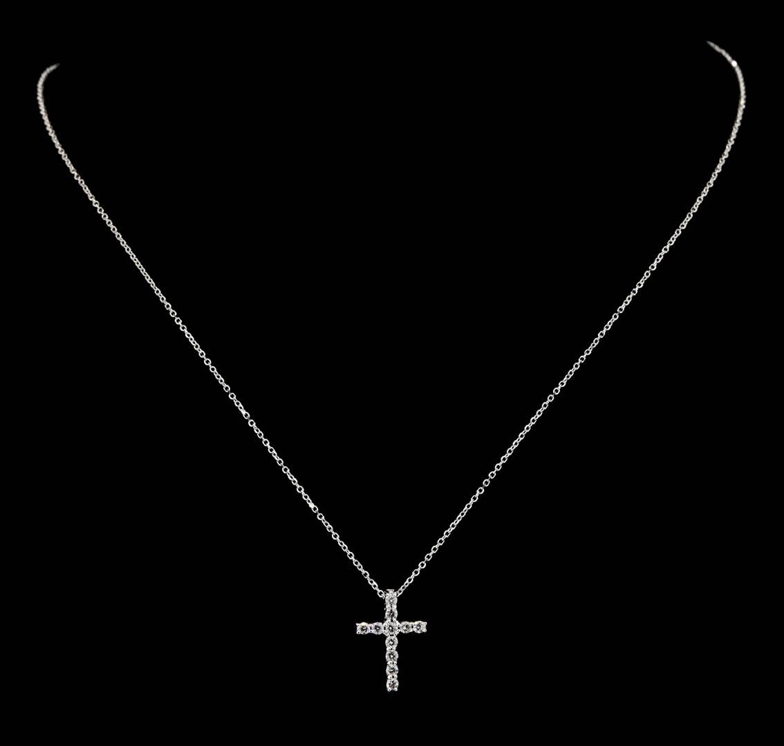 One cross pendant and chain featuring: 14KT white gold weighing 1.9 grams containing diamonds weighing 0.27ctw.