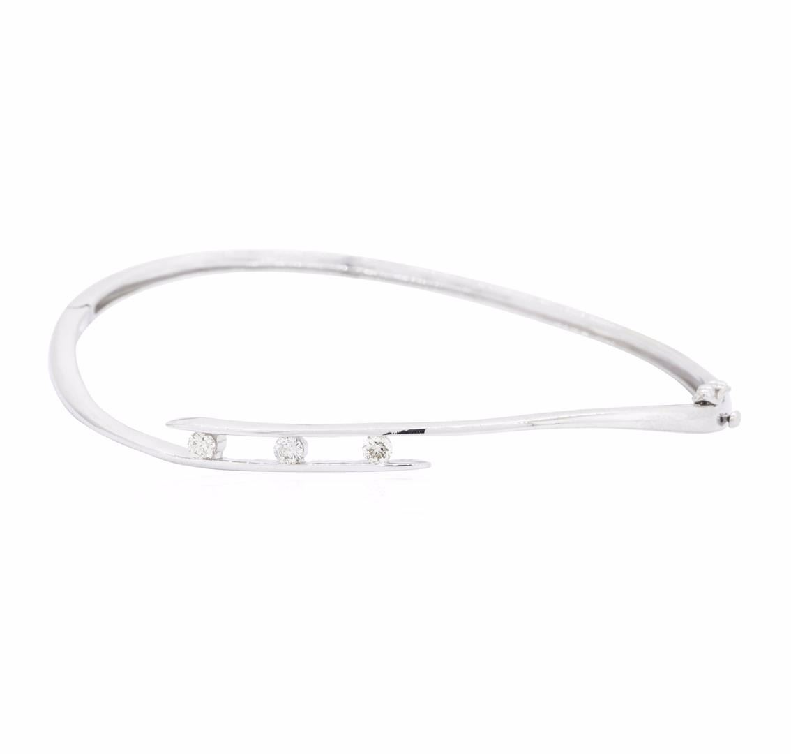 One lady's bangle bracelet featuring: 14KT white gold weighing 8.6 grams containing diamonds weighing 0.30ctw The bracelet measures approximately seven inches in circumference.