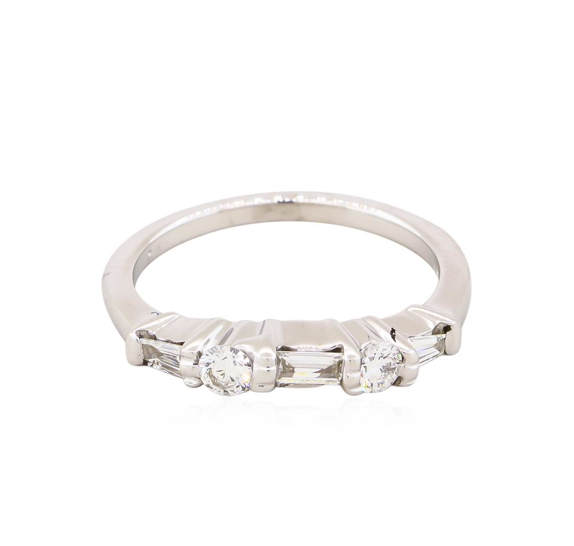 14KT White Gold 0.35ctw Round and Baguette Cut Diamond Ring