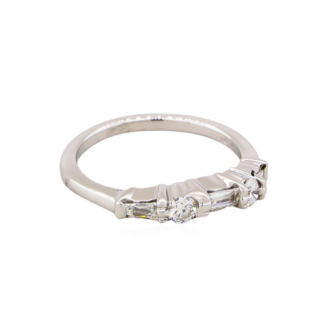 14KT White Gold 0.35ctw Round and Baguette Cut Diamond Ring