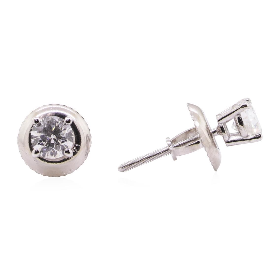 One pair of stud earrings with screw-on/screw-off backs and posts featuring: 14KT white gold weighing 0.8 grams containing diamonds weighing 0.38ctw.