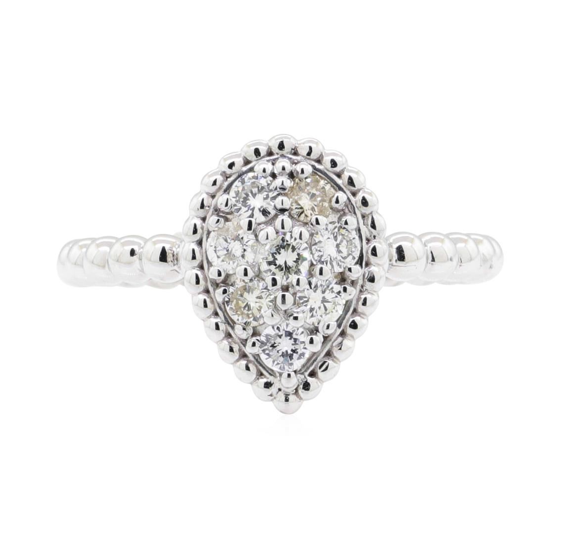 One Ladies ring featuring: 14KT white gold weighing 3.1 grams containing diamonds weighing 0.39ctw. The ring is a size 6.75.