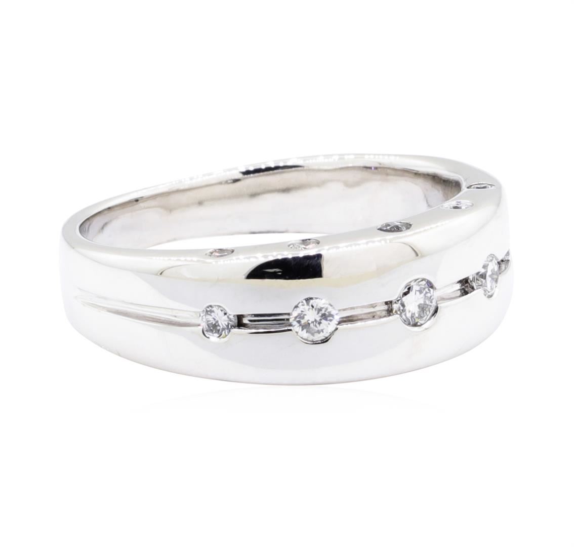 One band featuring: 14KT white gold weighing 6.8 grams containing diamonds weighing 0.40ctw. The ring is a size 9.