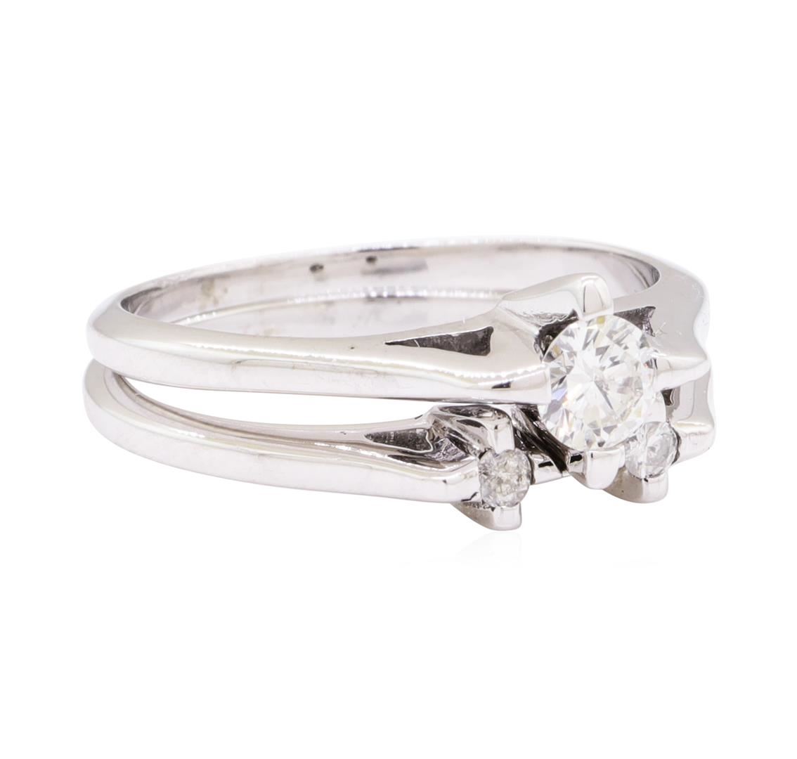 One wedding set featuring: 14KT white gold weighing 5.2 grams containing diamonds weighing 0.40ctw. The rings are size 7.5.