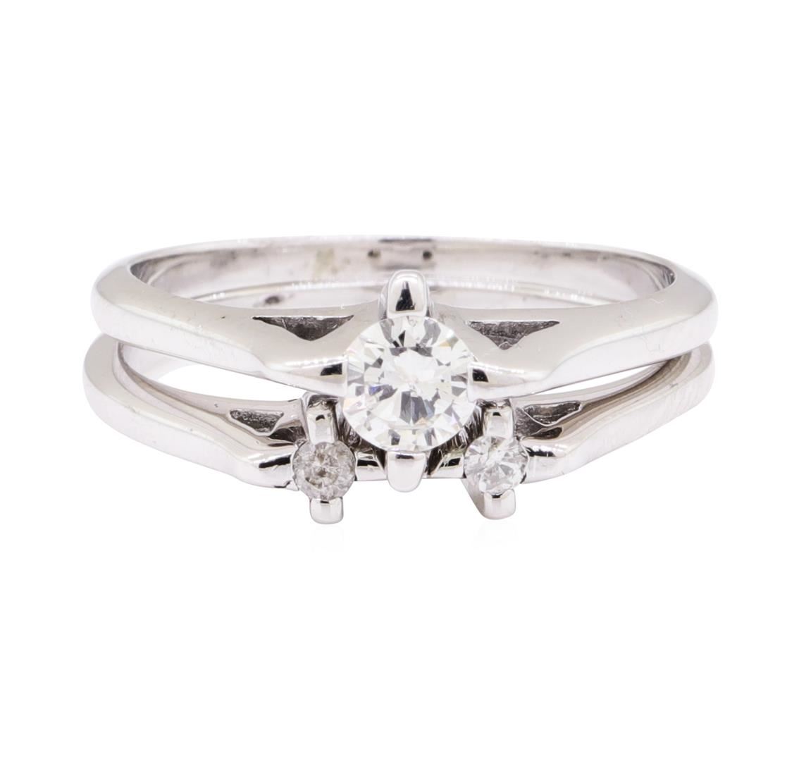 One wedding set featuring: 14KT white gold weighing 5.2 grams containing diamonds weighing 0.40ctw. The rings are size 7.5.