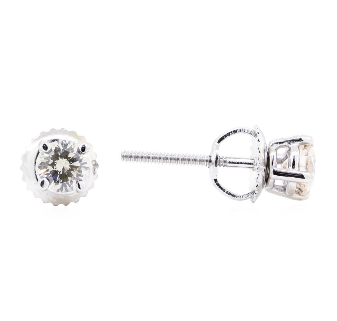 One pair of stud earrings with screw on/screw off posts and backs featuring: 14KT white gold weighing 1.1 grams containing diamonds weighing 0.48ctw.