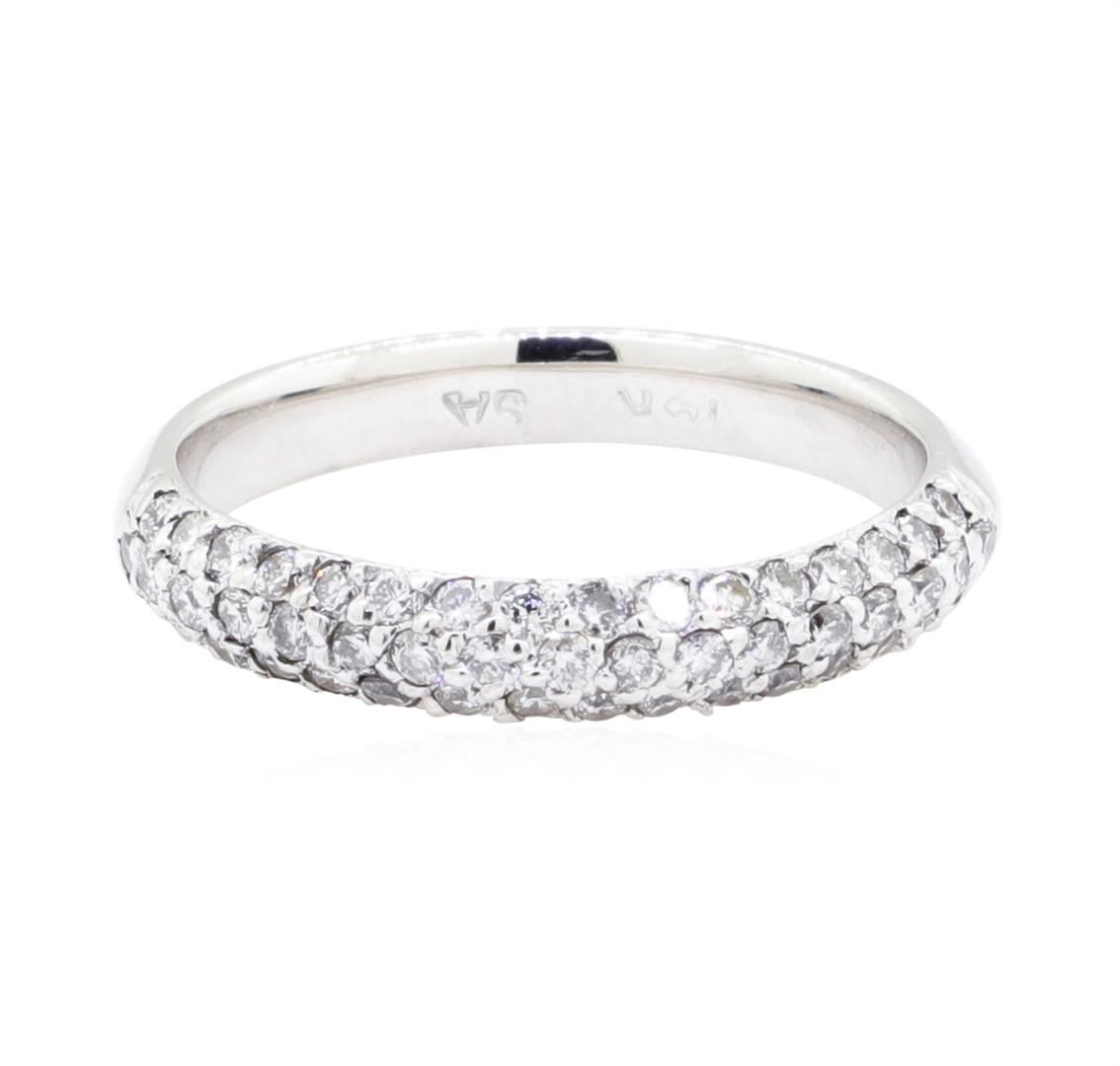 One band featuring: 14KT white gold weighing 1.9 grams containing diamonds weighing 0.50ctw. The ring is a size 4.5.