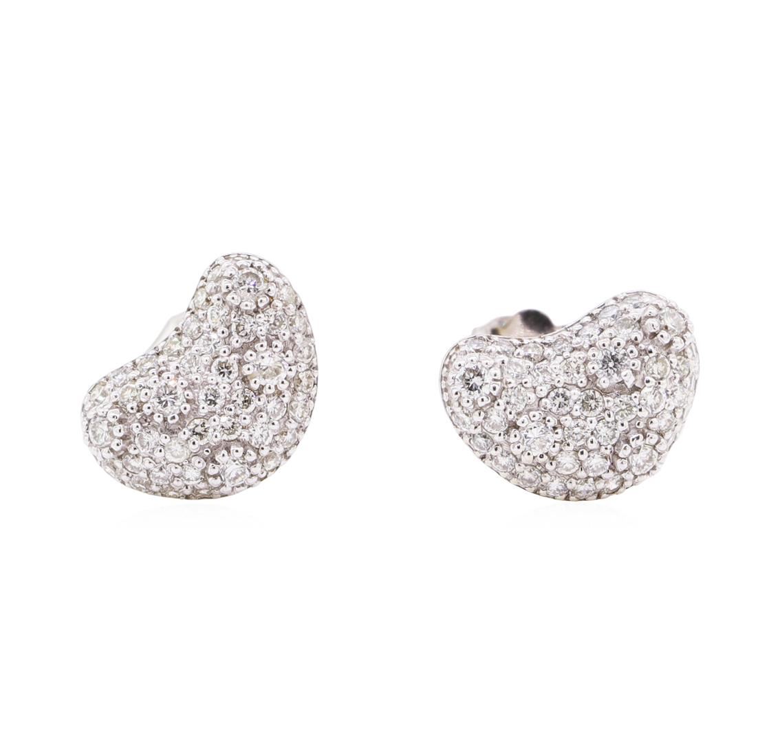 One pair of kidney bean shape stud earrings featuring: 14KT white gold weighing 2.2 grams containing diamonds weighing 0.50ctw.