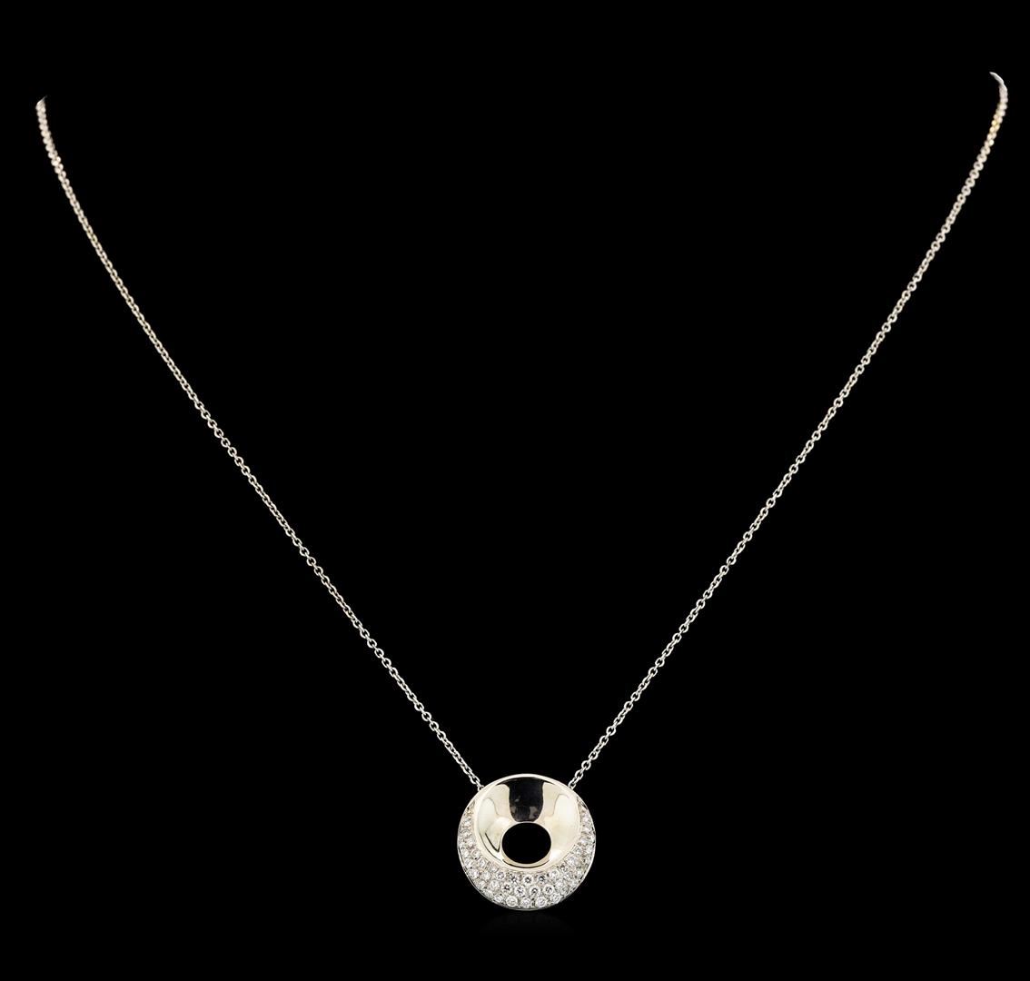 One lady's pendant and chain featuring: 14KT white gold weighing 8.0 grams containing forty-two diamonds weighing 0.50ctw.
