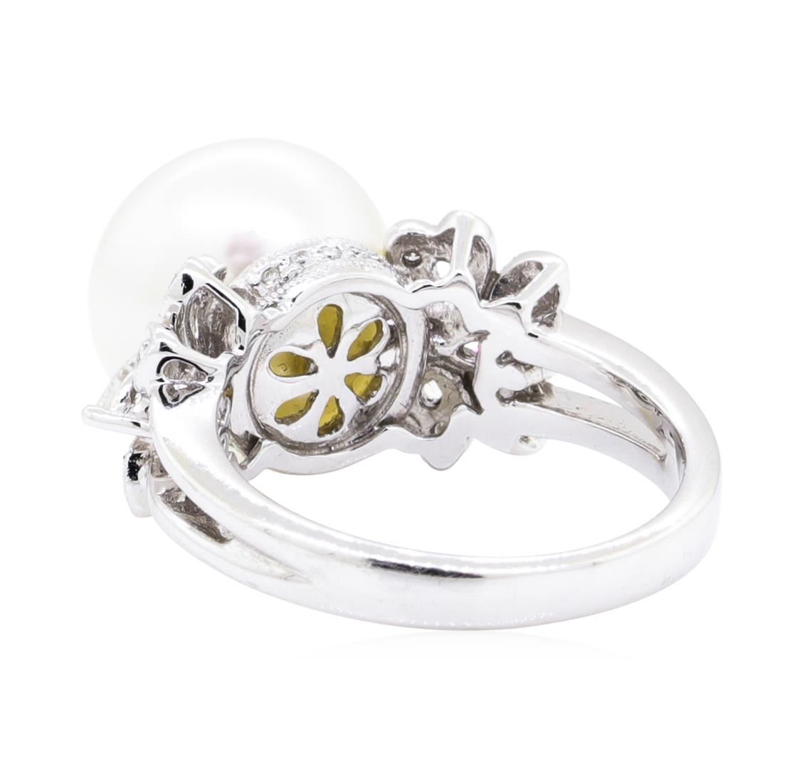 One ring featuring: 14KT white gold weighing 6.6 grams containing one freshwater button pearl measuring 11.5mm and diamonds weighing 0.50ctw. The ring is a size 6.