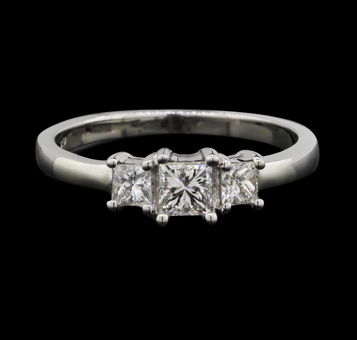 One lady's ring featuring: 14KT white gold weighing 2.8 grams containing three diamonds weighing 0.50ctw.