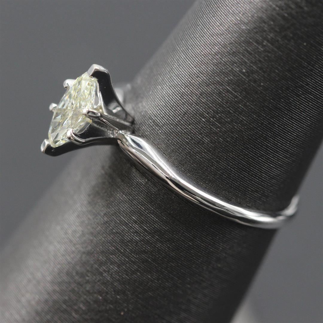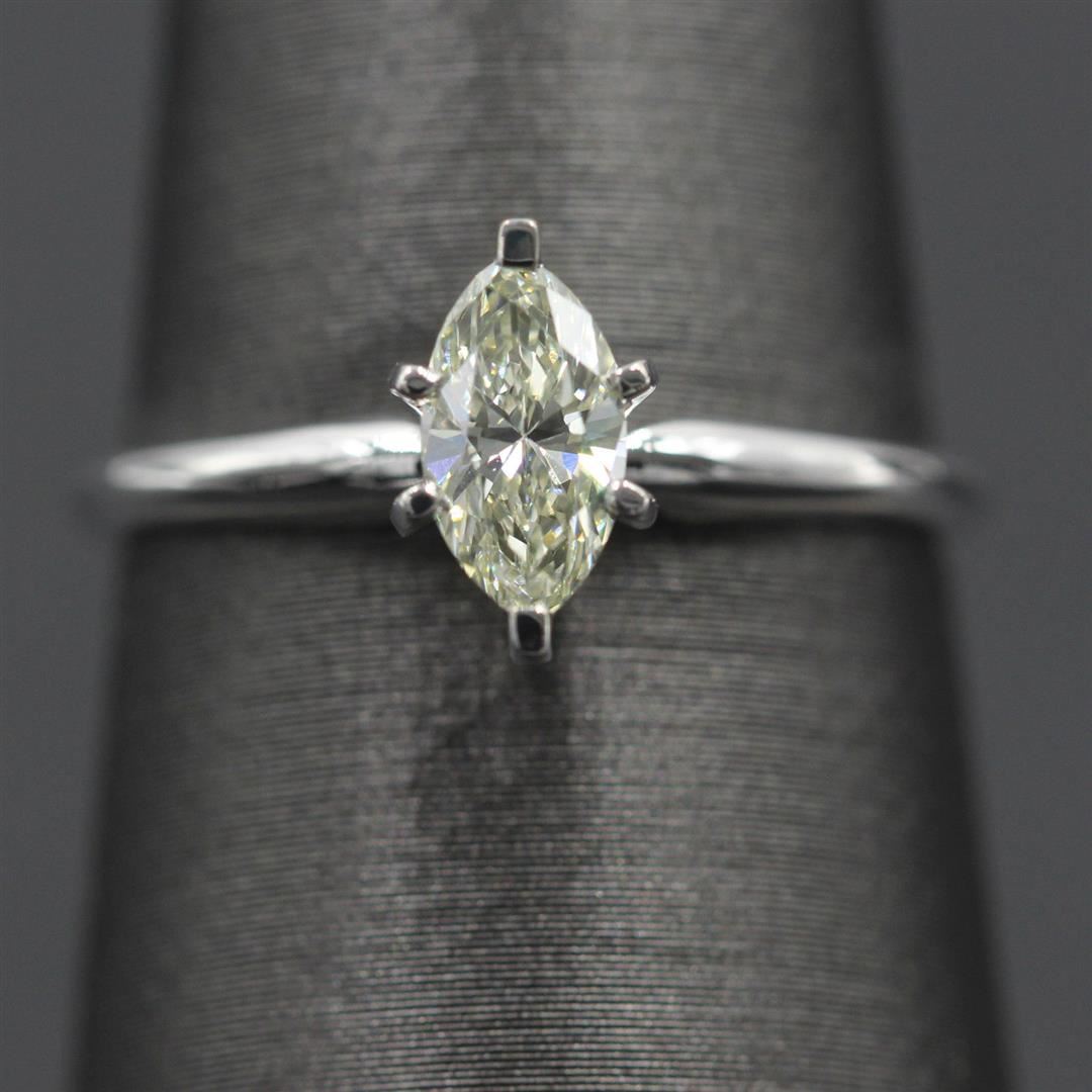 One Natural Marquise Diamond Solitaire Engagement Wedding Ring. The ring design is solitaire / tradition. The metal type is 14k white gold. Gross weight is 1.75 grams with a total of 1 diamond. Condition is brand new. The main stone is cognac / natural. Main diamond carat equates 0.52 ct, shape is brilliant round cut, clarity VS-1, color H, and the cut is excellent.