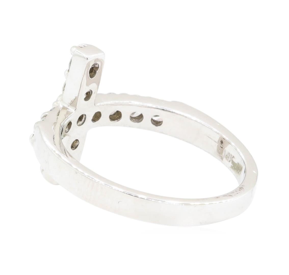 One cross ring featuring: 14KT white gold weighing 1.6 grams containing diamonds weighing 0.53ctw. The ring is a size 6.5.